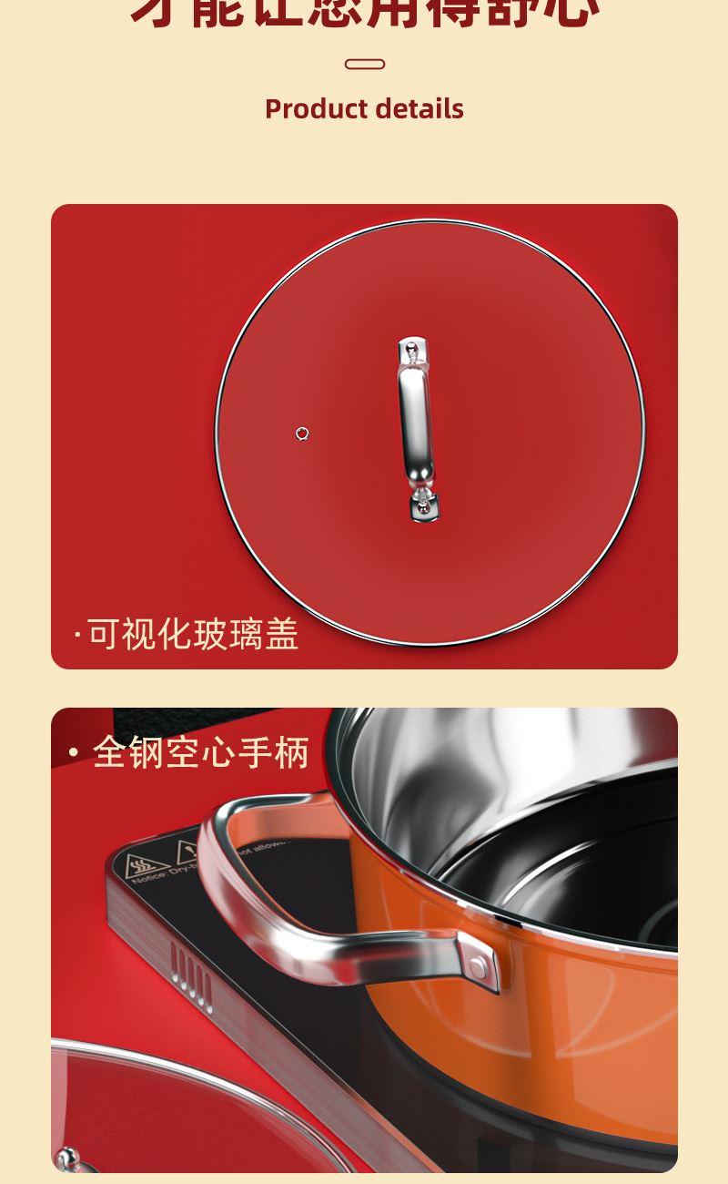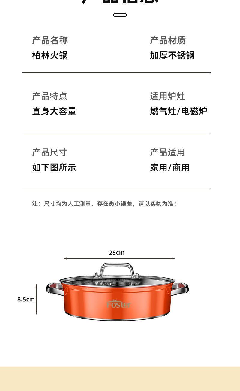 标准精工打磨抛光,锅内亮光外高温哑光爱马仕橙烤漆工艺,即现轻奢 美观外,便于清洗于一身 可视钢化玻璃盖,时尚美观实用,对锅内烹饪美食一目了然,方便操作,全钢中空手柄消除普通电木手柄在使用中遇高温变形的缺憾 蒸、煎、煮、炖、焖、涮,样样都行 材质:优质不锈钢 重量: 1KG 直径:28cm 彩盒尺寸:30.5*9*28.6cm