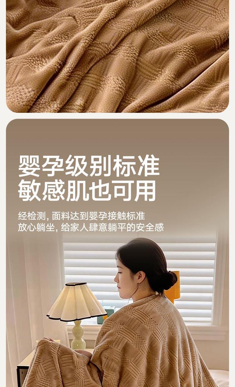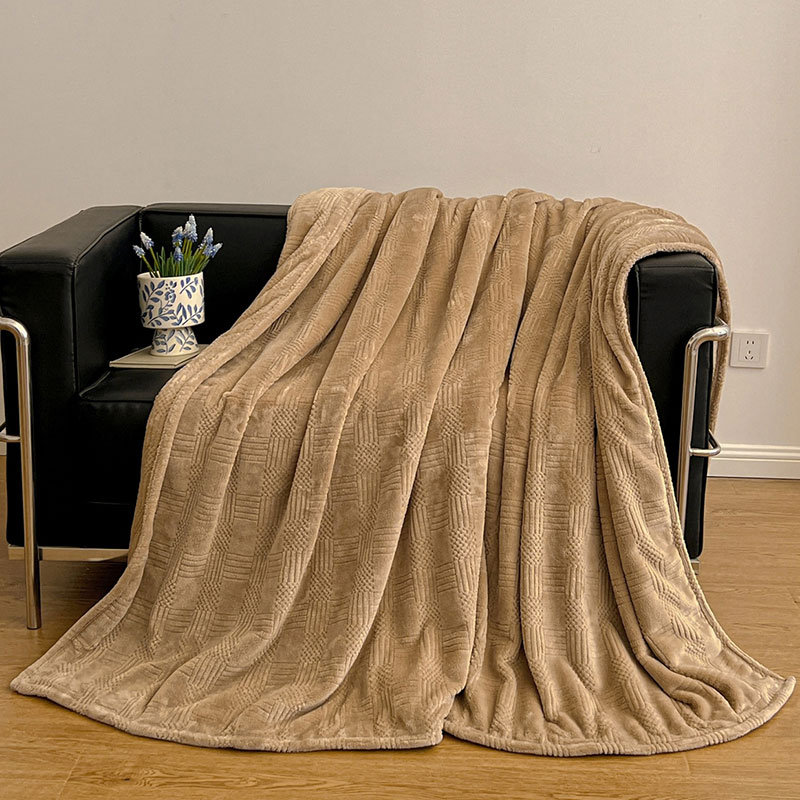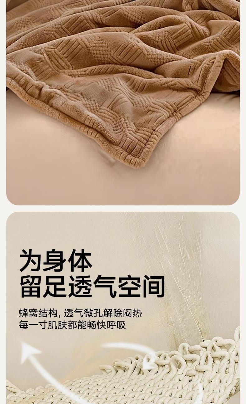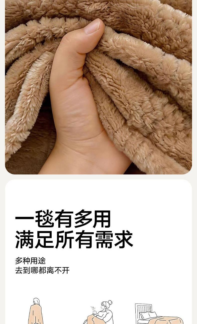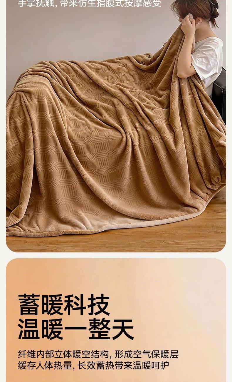 货 号 :HMT-2518 面 料 :提花法莱绒 规 格 :180*200cm 重 量 :净重约1000g 包装尺寸 :45*36*14.5cm 装 箱明细 :50条/包 1、采用提花法莱绒作为面料,触感比拟撸猫感。 2、加厚工艺,保暖性更强。 3、精致卷边,仪式感强。 4、搭配精美内袋,礼盒,彰显品 牌质感,高 端大气