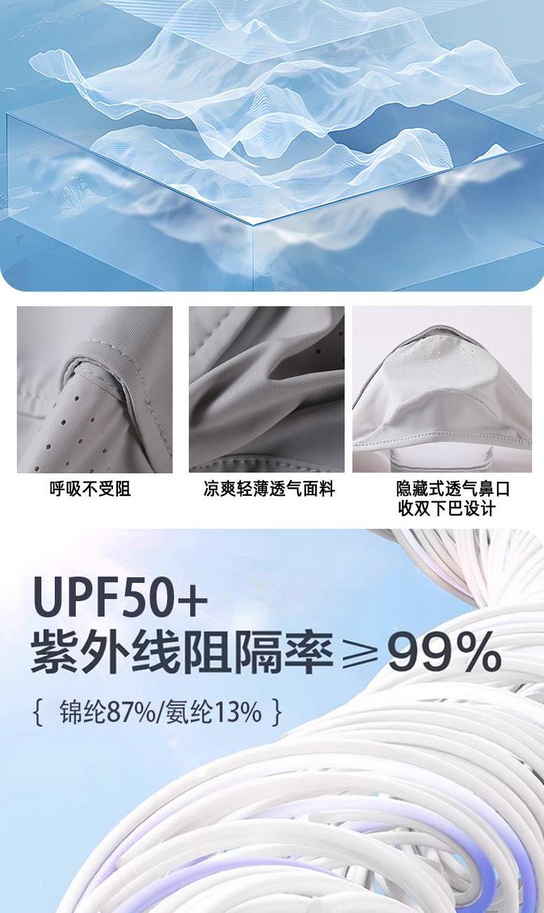 颜色:暮云灰 材质:锦纶+氨纶 采用UPF50+防晒面料,有效阻挡紫外线 冰凉触感,提升夏日清凉度 轻薄面料,透气性强,不闷热
