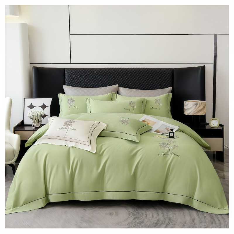 1:高支长绒棉面料,手感细腻柔滑,贴肤舒适织造紧密,久用不易起球 2:以精湛的绣花工艺将自然元素巧妙融入,每一针一线都凝聚着匠心为床品增添了一份灵动与雅致 3:绿色活性印染 健康舒适亲肤 色织靓丽 耐水洗不易褪色手感更柔软舒适 面料:新疆长绒棉 尺寸:标准:被套200*230cm*1 床单250*250cm *1 枕套48*74cm*2 包装:彩盒