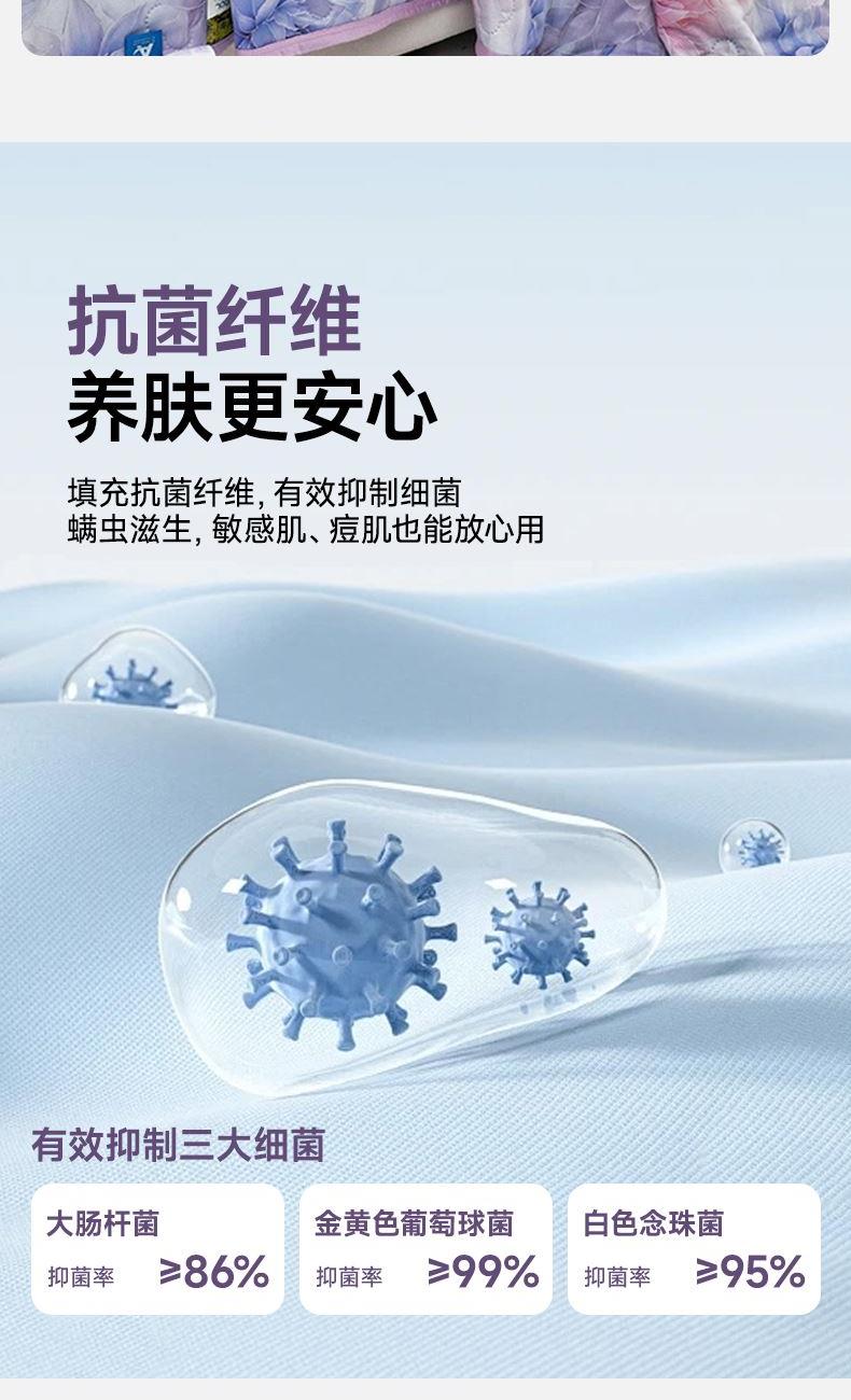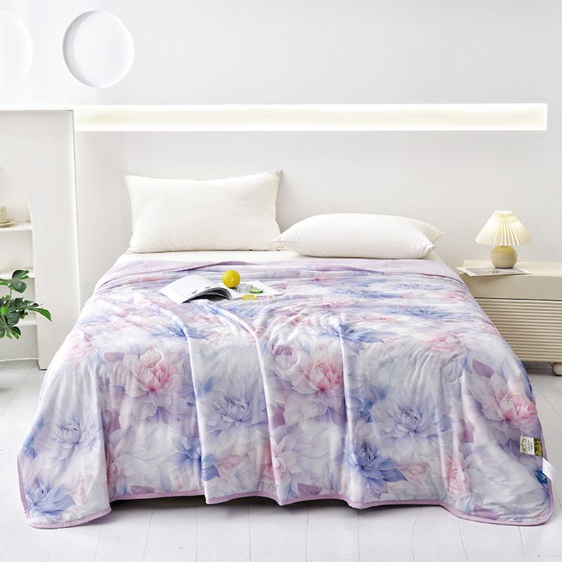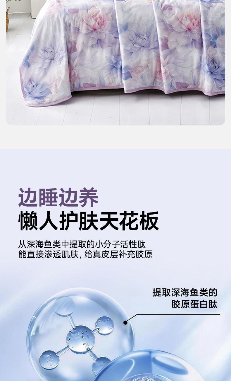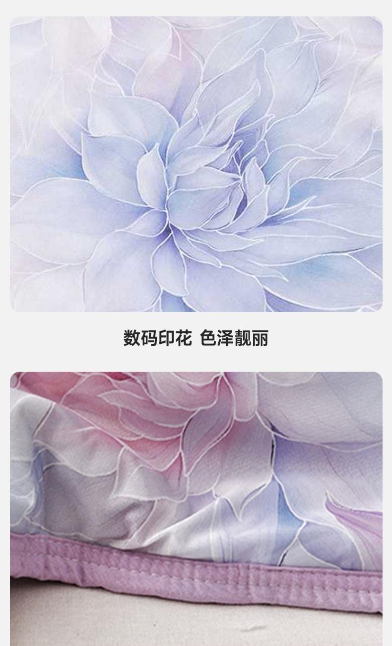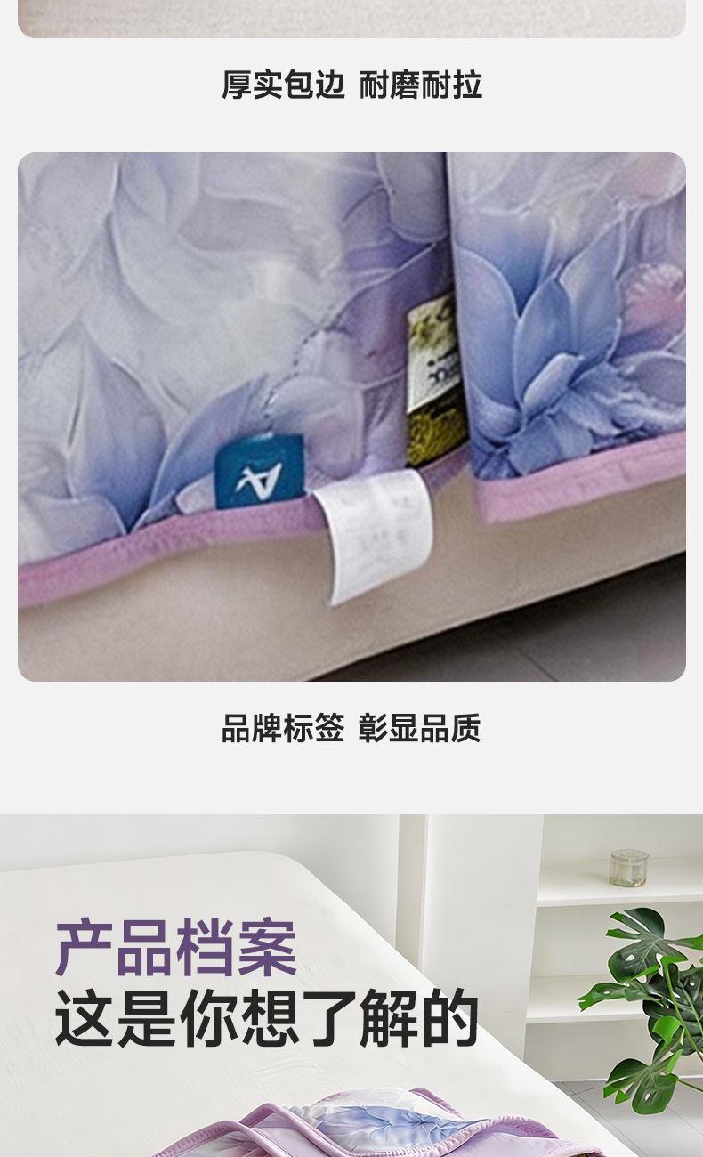 货 号 :HXB-2525 面 料 :凉感丝(添加薰衣草香氛) 填 充 :深海胶原肽纤维+抗 菌纤维 规 格 :150*200cm 重 量 :1250g 包装尺寸 :50x38x15cm 装 箱明细 :10床/箱或50条/包 1.精选面料 : 采用柔软凉感的凉感丝制作成的面料,亲肤舒适透气性强; 即刻凉感,夏日低5℃; 2.优质填充 : 艾草优质超细纤维,柔软亲肤,导湿透气; 3.精致工艺 : 活性印染工艺 高 级感十足压花工艺,简约时尚的风格 适合各种卧室风格;