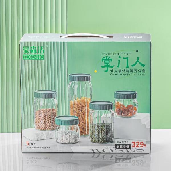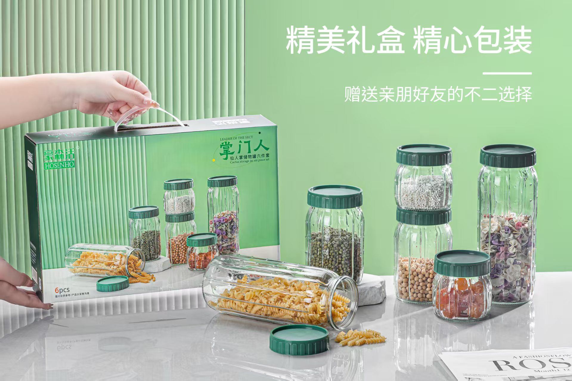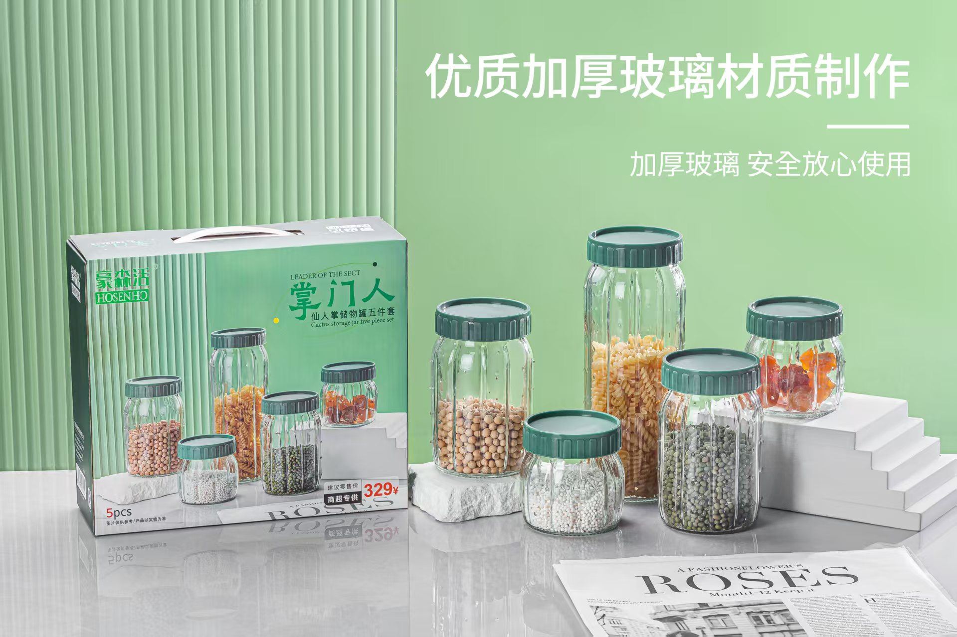 仙人掌储物罐六件套 货号:XRZCWG-L6 规格:1*12套 容量:1050ml*2+680ml*2+320ml*2 彩盒尺寸:35.6*9*23.4cm 外箱尺寸:56*36.8*48.2 条 码:6976254570269