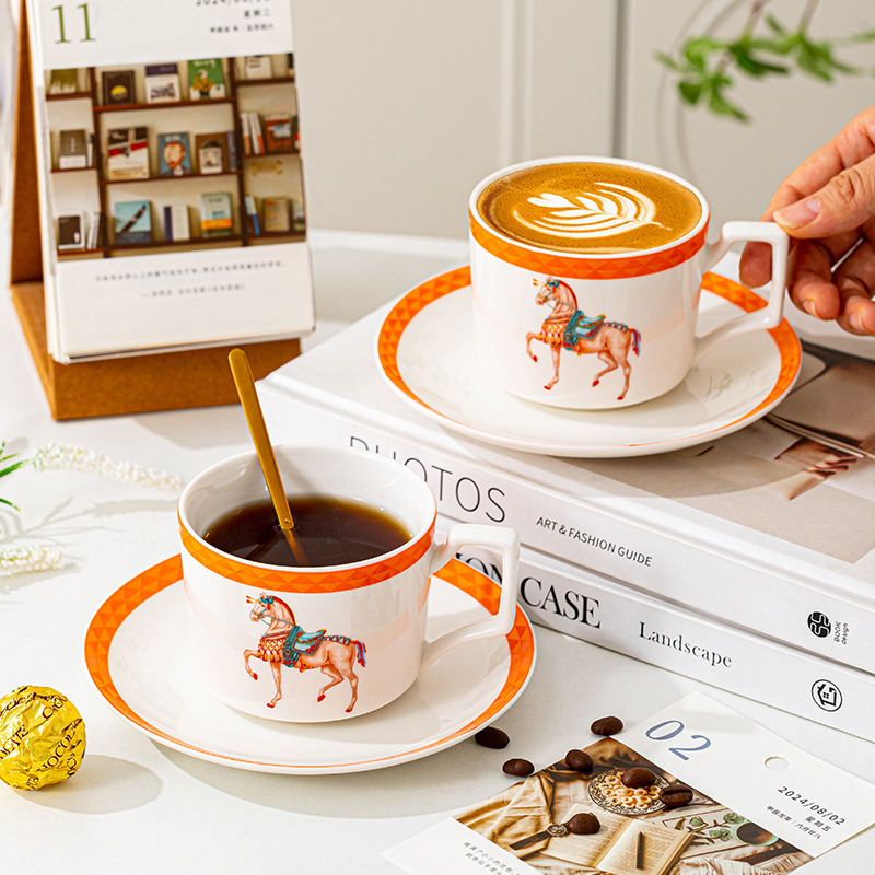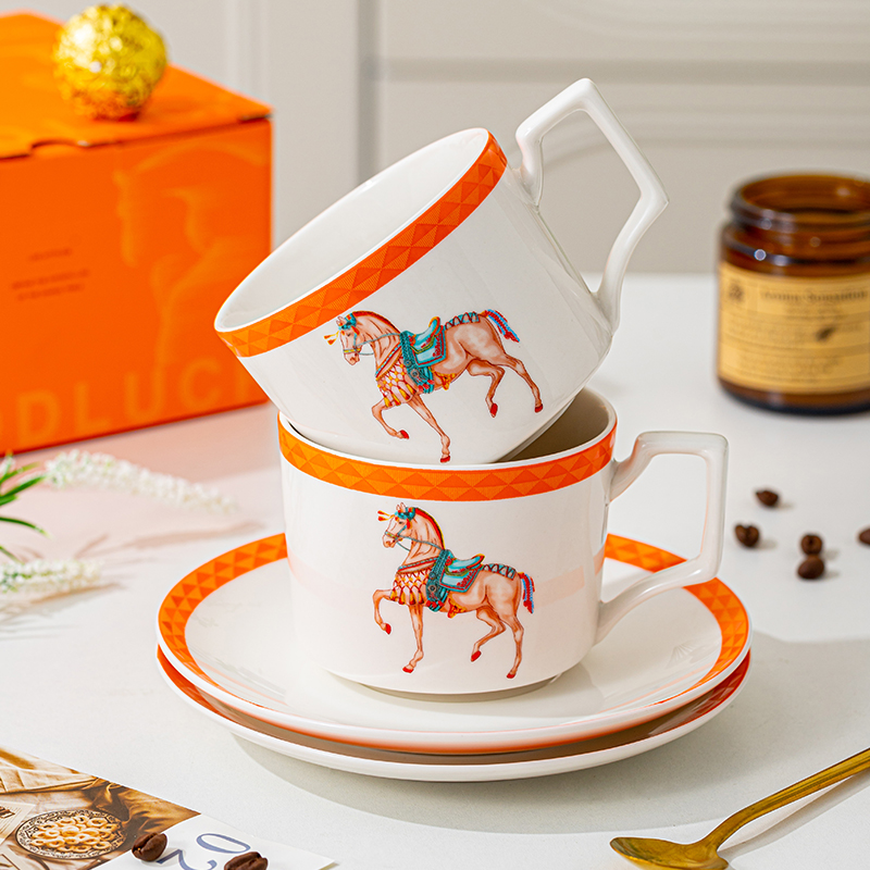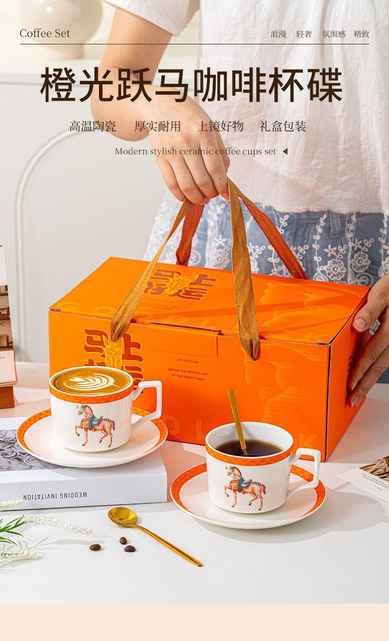 瑾明礼-橙光跃马-咖啡对杯-2杯2勺2碟