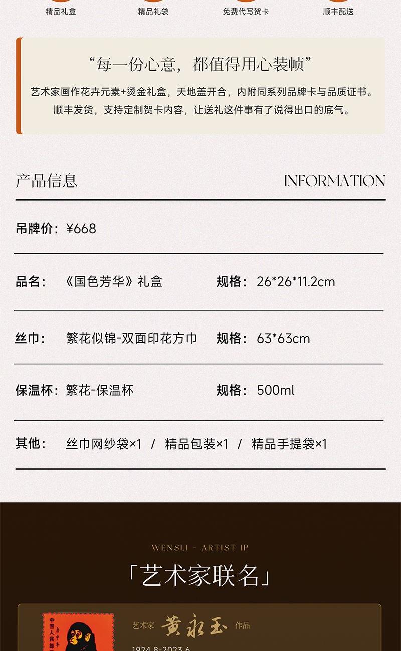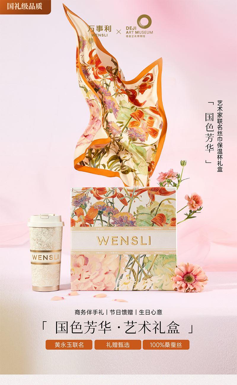 《国色芳华》艺术家丝巾保温杯礼盒万事利专柜新品