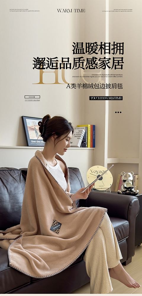 1:温暖相拥邂逅品质感家居 羊棉绒包边披肩毯 2:暖软细腻感把日子过成一首慢诗在柴米油盐的间隙藏满细碎的浪漫与温柔 3:我们的羊棉绒密集细腻,亲肤厚实软糯保温效果好,绒毛平整 尺寸:100*150cm*1 面料:羊棉绒 包装:彩盒