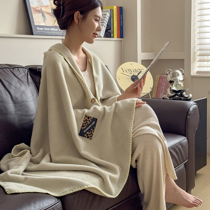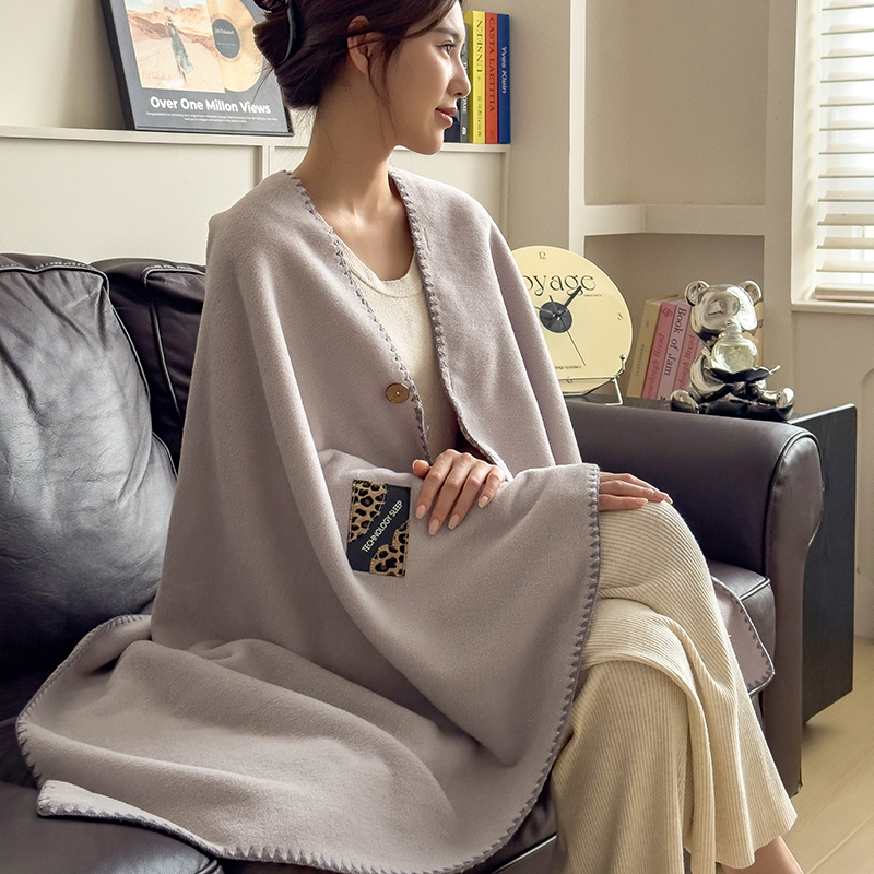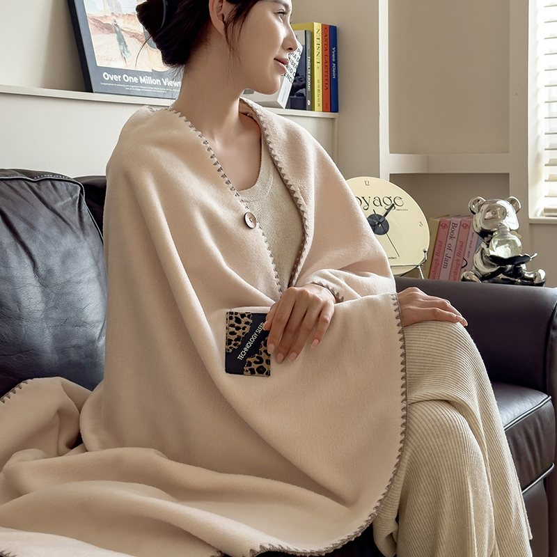 花花公子-家居家纺-欧式轻奢羊棉绒多功能披肩盖毯