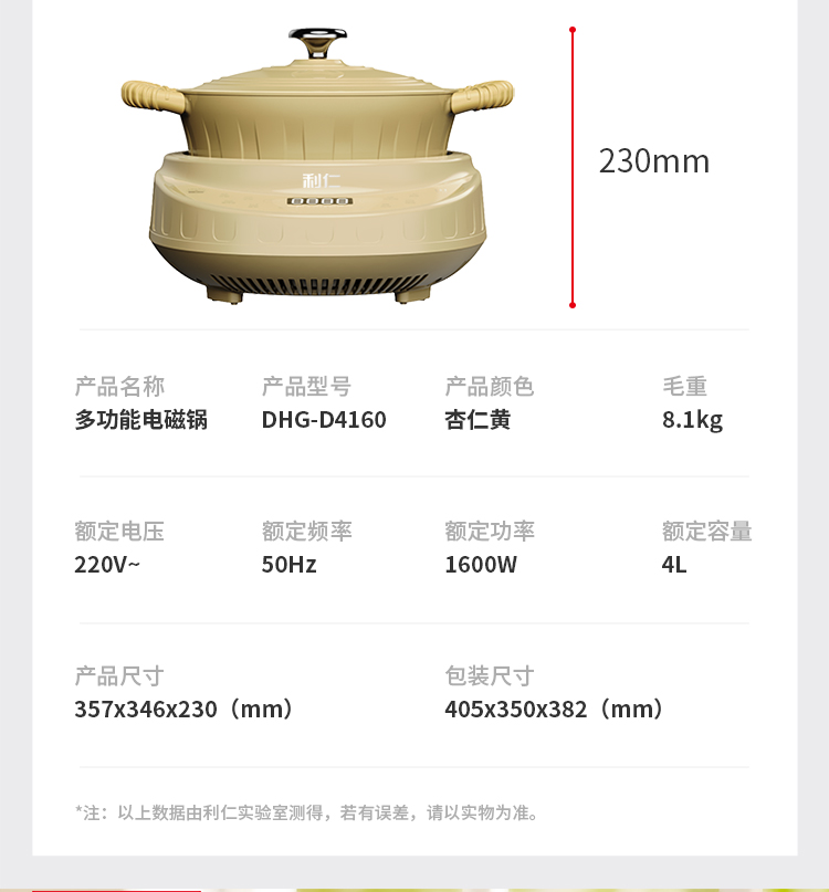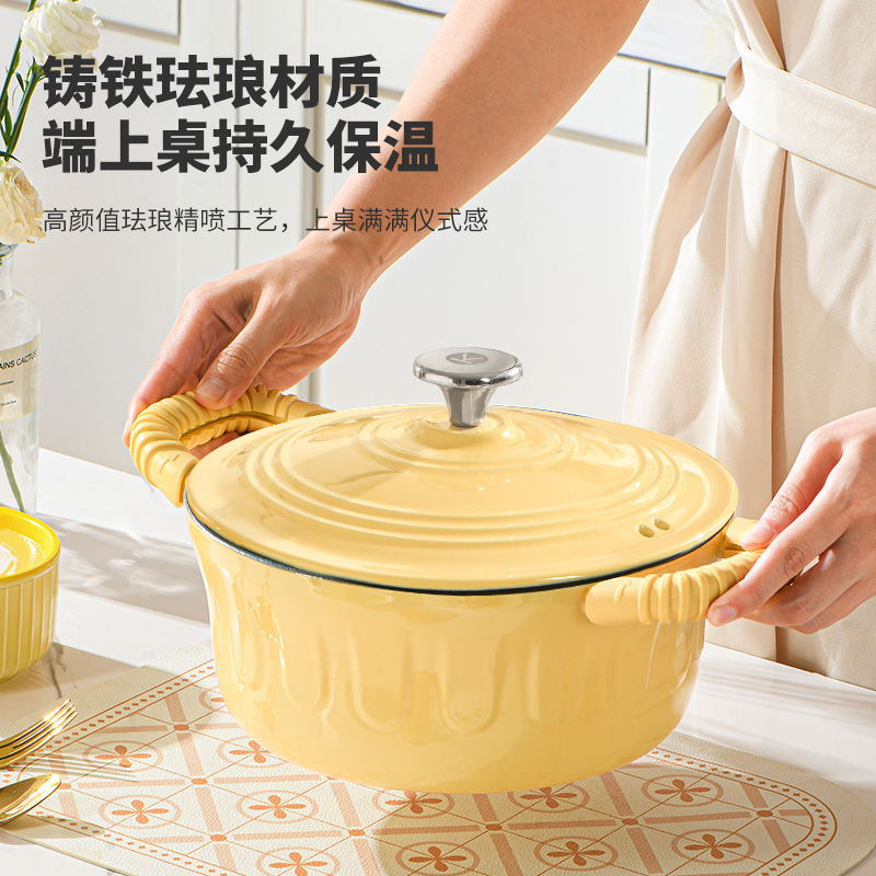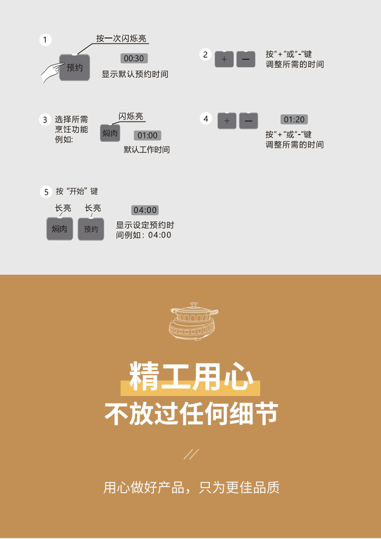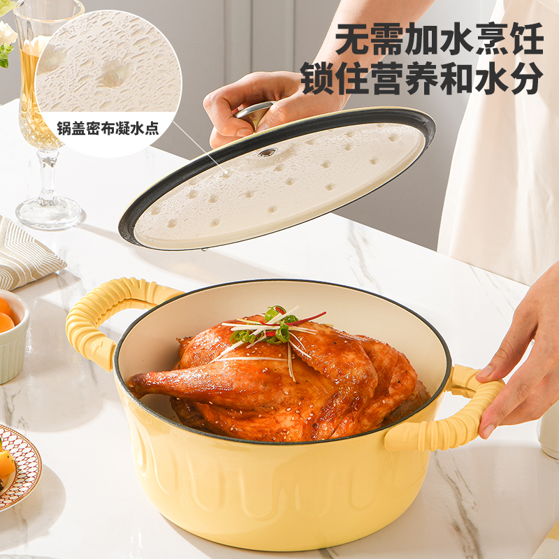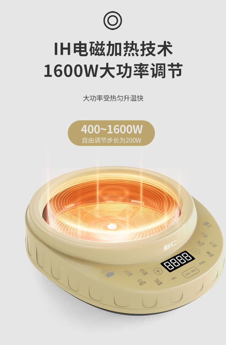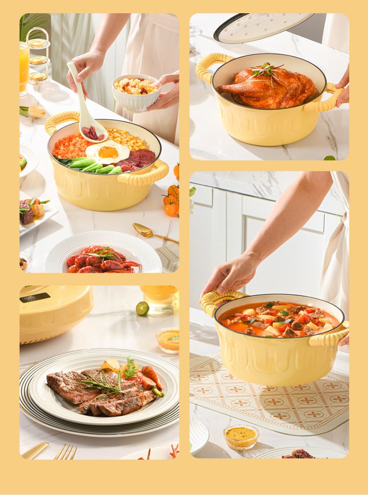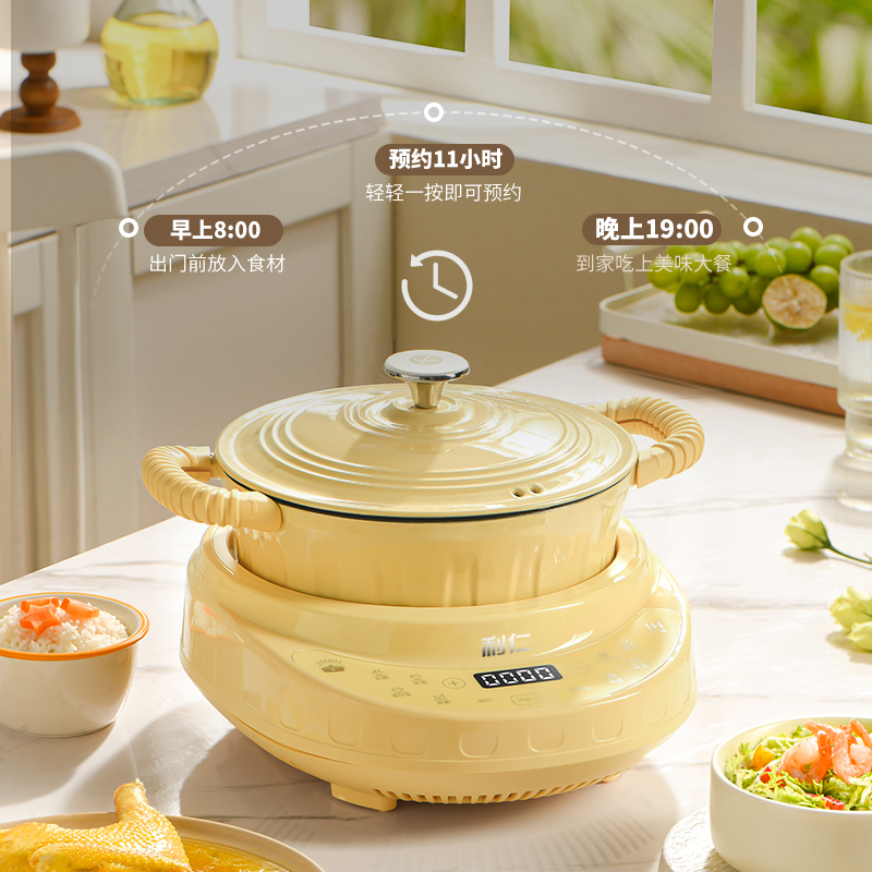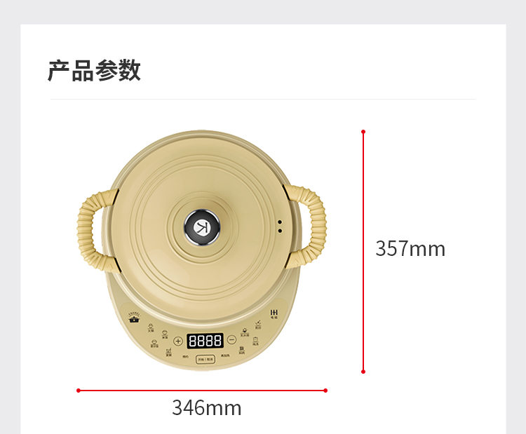8大智能菜单,花洒锅盖微压烹饪 品质铸铁珐琅,智能触控面板 4L大容量,1600W功率IH加热 分体式一锅端,防烫把手硅胶套 24小时预约免看火从容安排时间