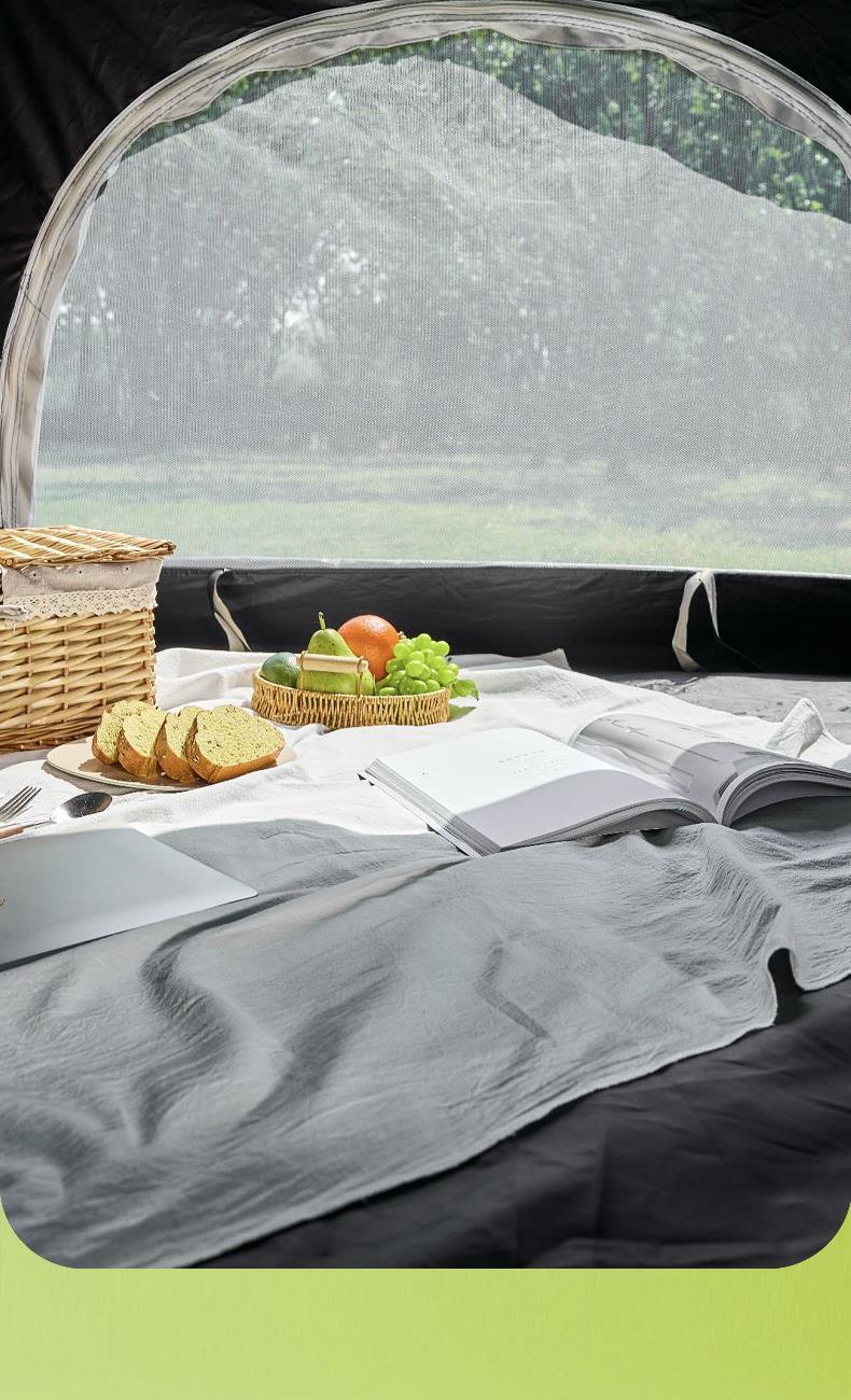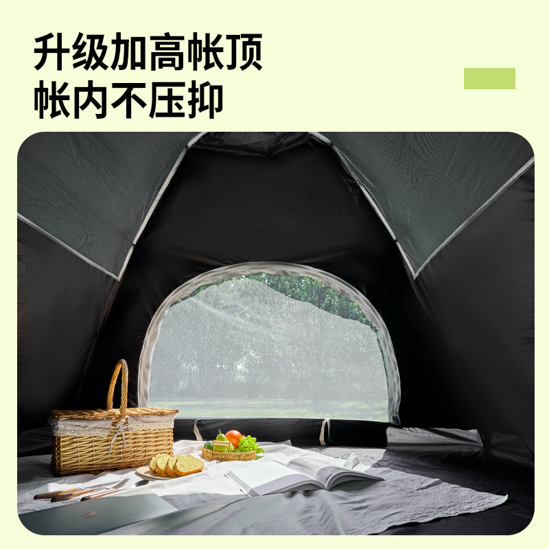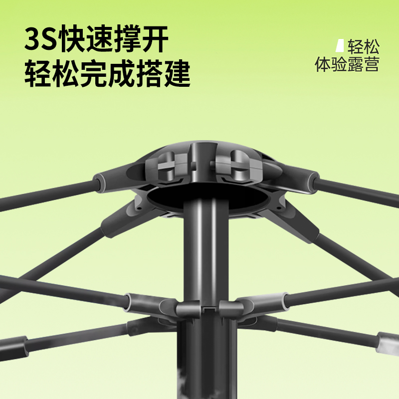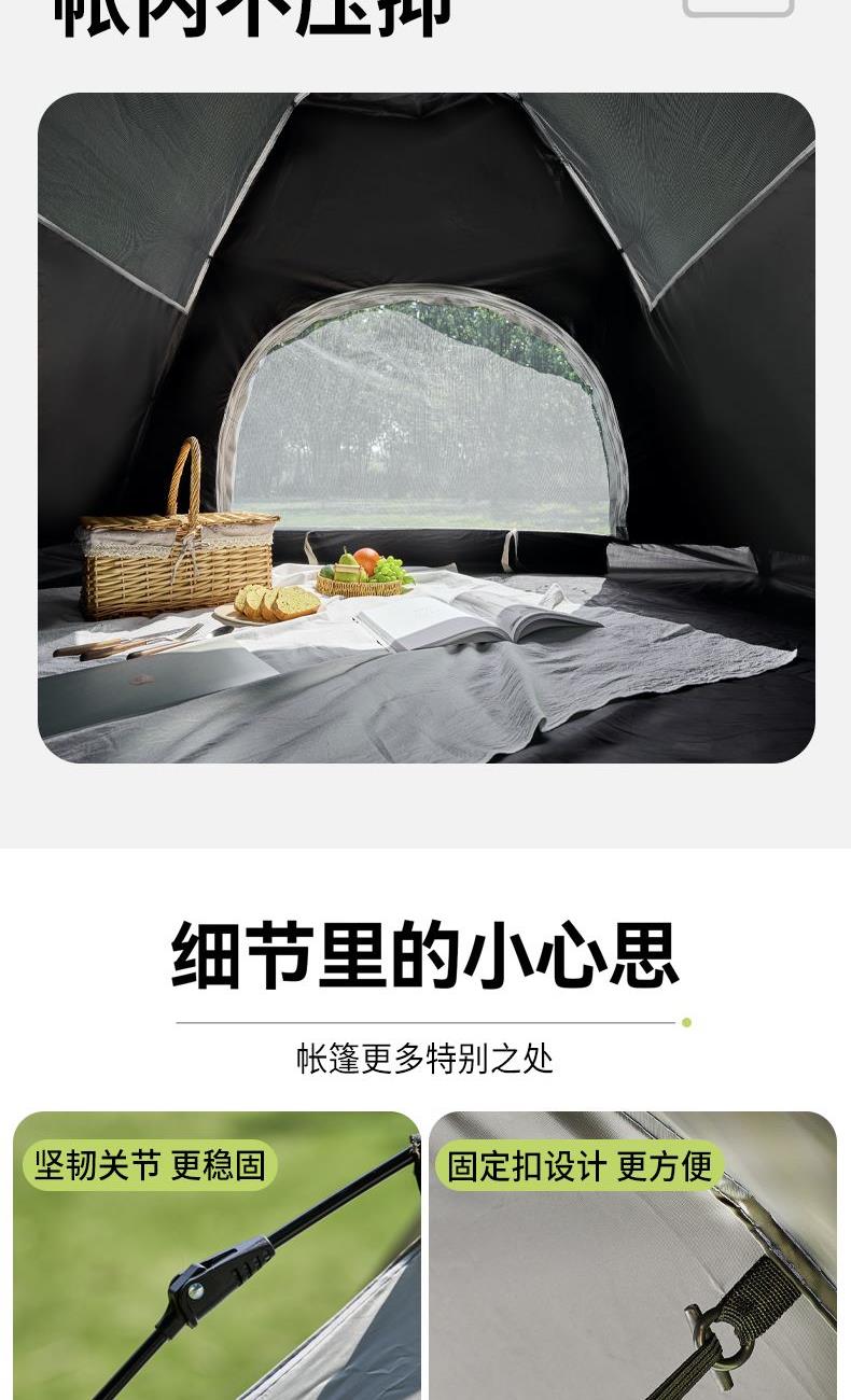 规格: 220x200x135cm 材质:210D牛津布+PU1500MM+网纱 杆子:8.5mm自动弹簧纤维杆 配件:8个地钉+4个防风绳