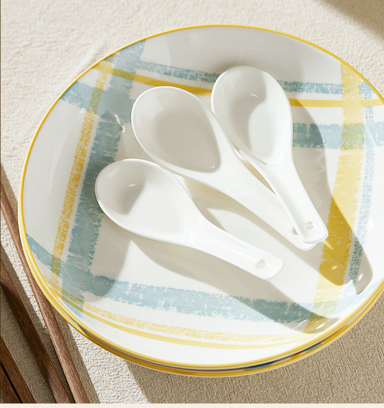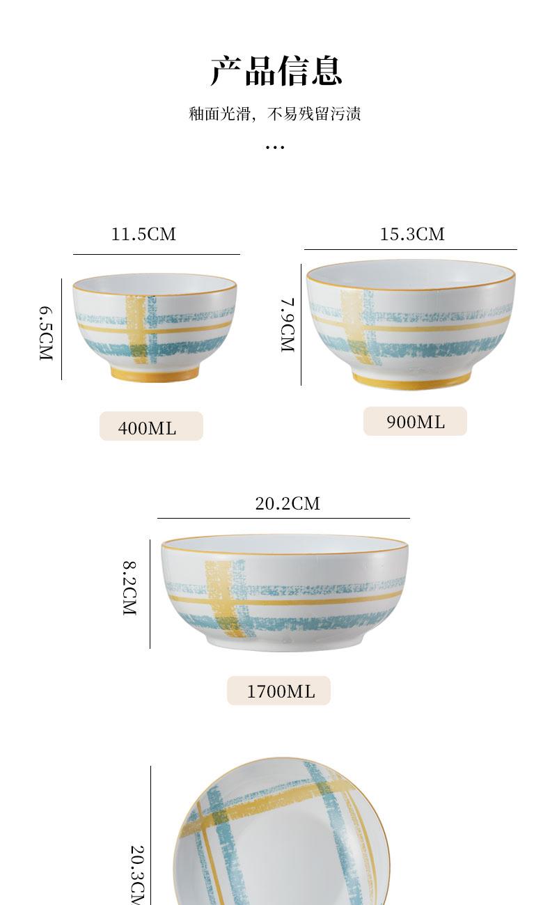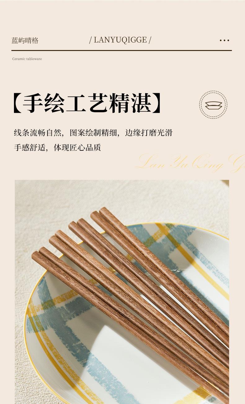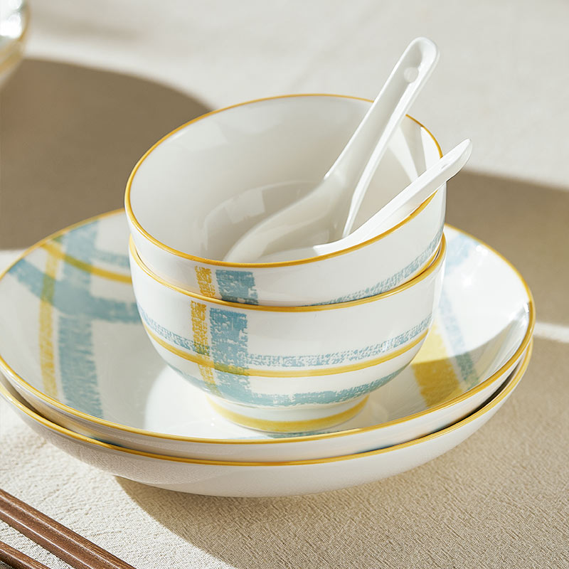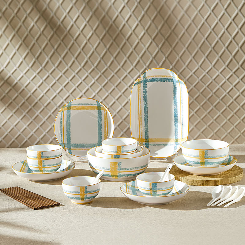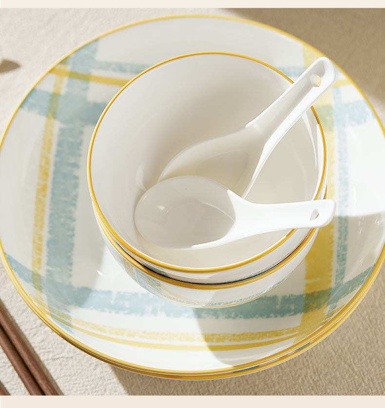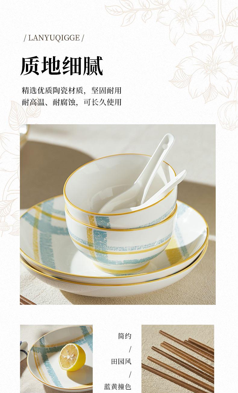 货号:Y-LY/L26 规格:小碗*6、盘子*4、中碗*2、大碗*1、勺子*6 鱼盘*1、筷子*6 材质:陶瓷 适用温度:0°C-200°C 1.厚实瓷质,隔热防烫,外观色彩清新、光洁透亮、花面细腻。2.适用于洗碗机,消毒碗柜、微波炉、冰箱等。3.釉面光滑细腻,久用不褪色,釉下彩工艺,描边碗沿,田园复古风格,底部不上釉防滑设计,防滑更平稳。4.性价比高,适合福利集采银行保险项目。