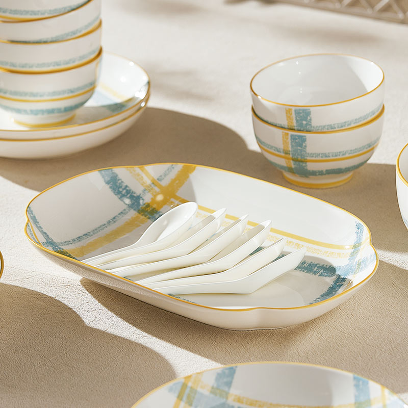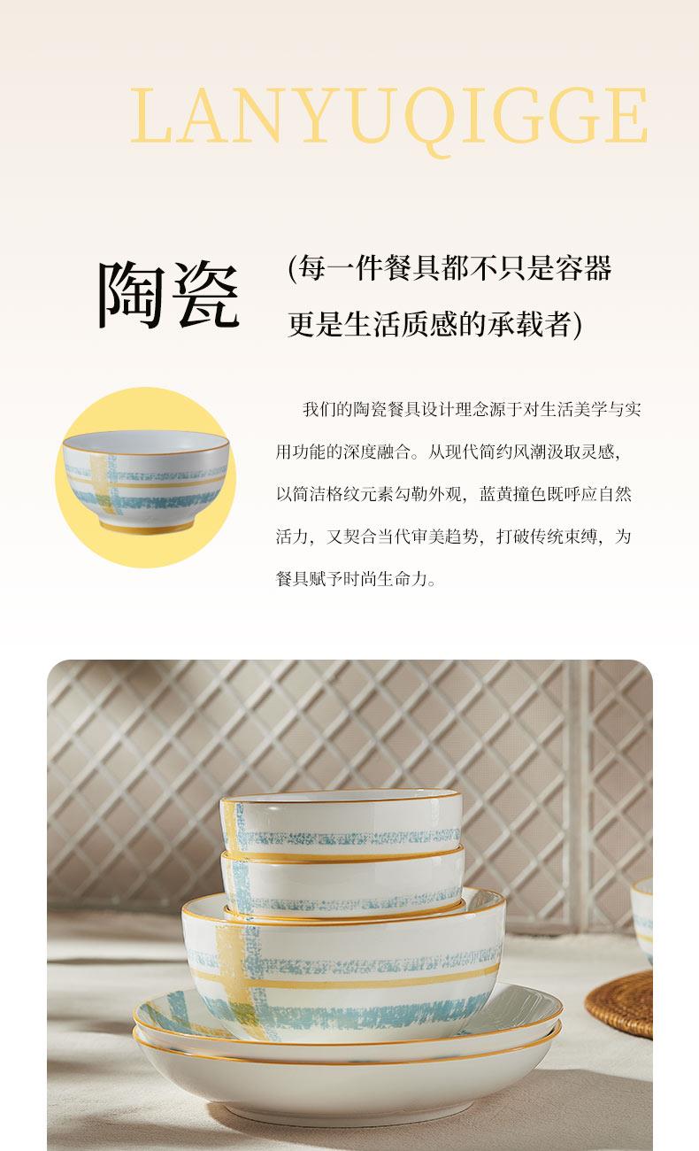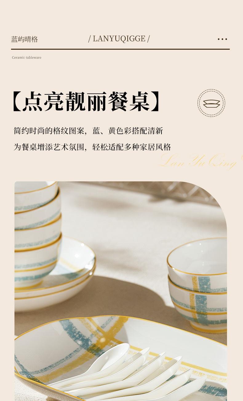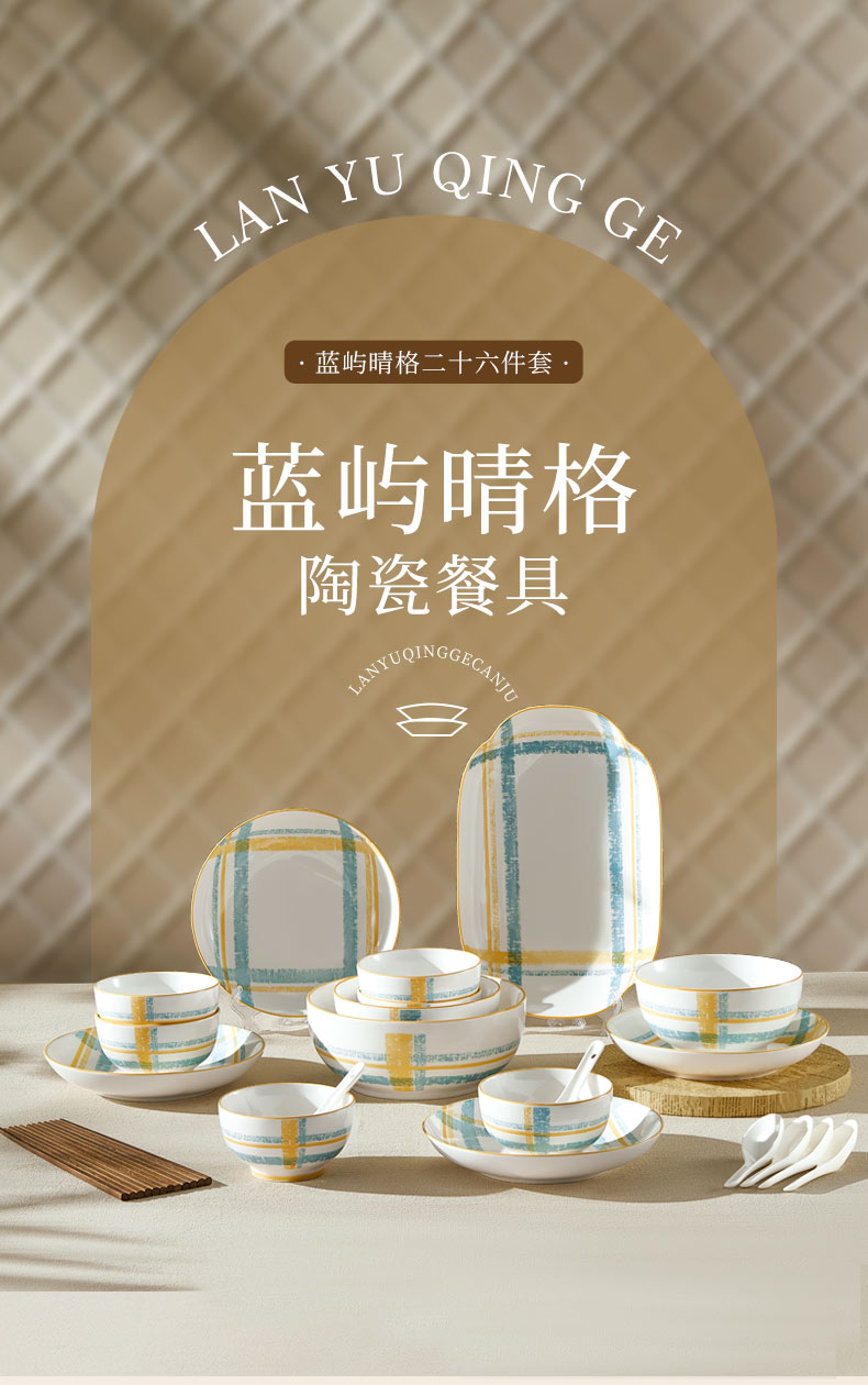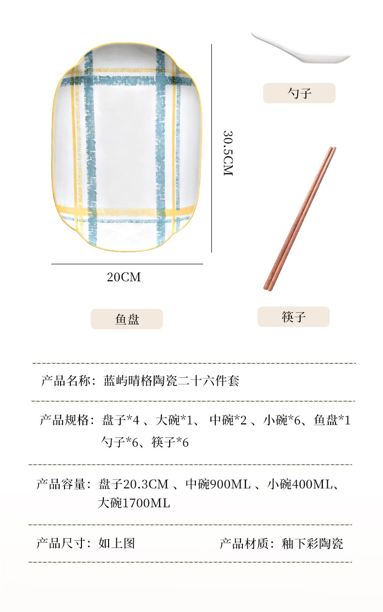 釉夏蓝屿晴格陶瓷餐具二十六件套