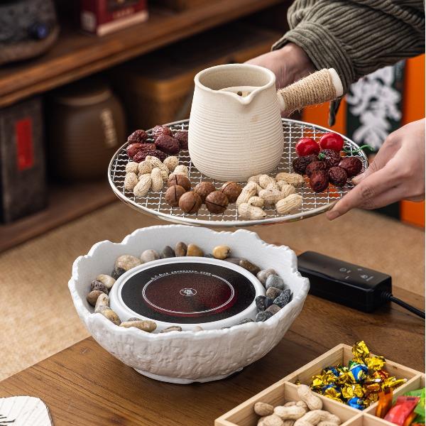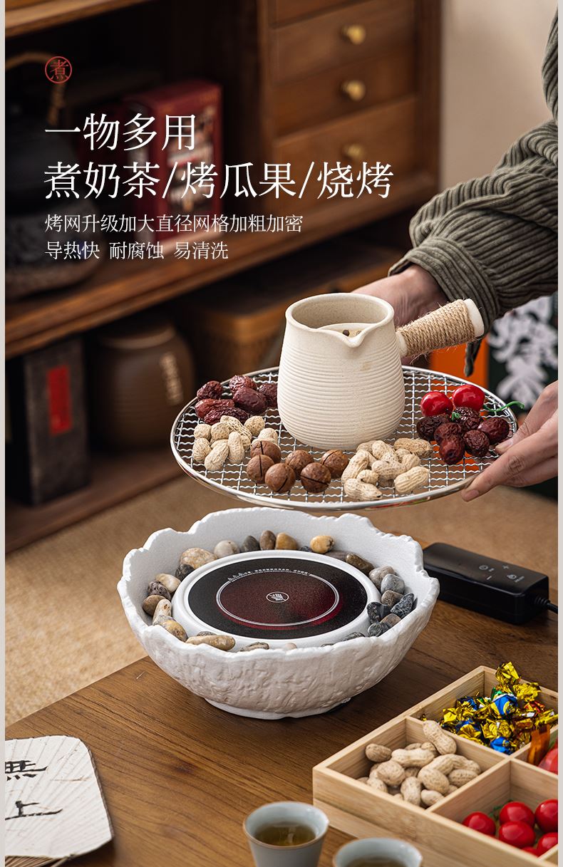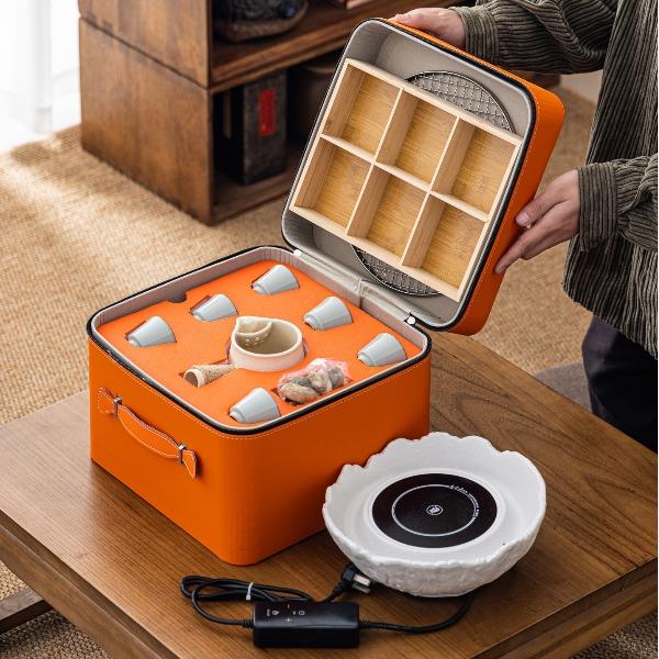 炉子:16*9.8厘米1000W 壶:16.9*10.4厘米500ml 品茗杯:5.6*4.3厘米50ml 旅行包:31*25*31厘米 精挑原料细筛瓷土, 千度煅烧高温成瓷,天然矿物釉,高温烧制无铅镉 ,搭配礼盒包装,自用赠礼两宜.