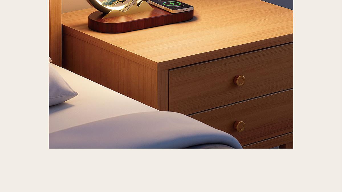 midu创意伴手礼定制15瓦无线充氛围灯实木摆件