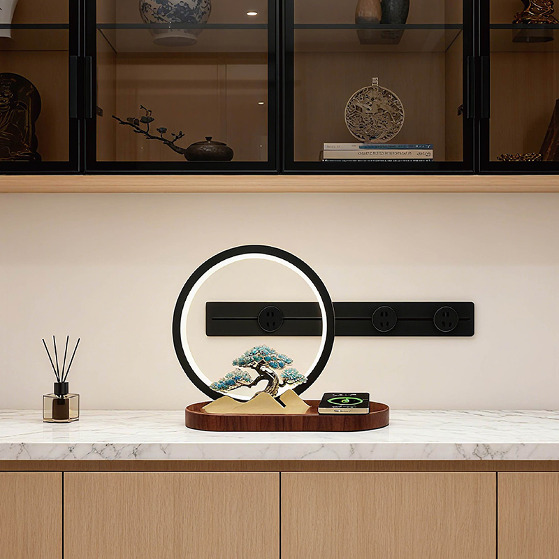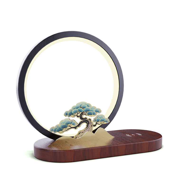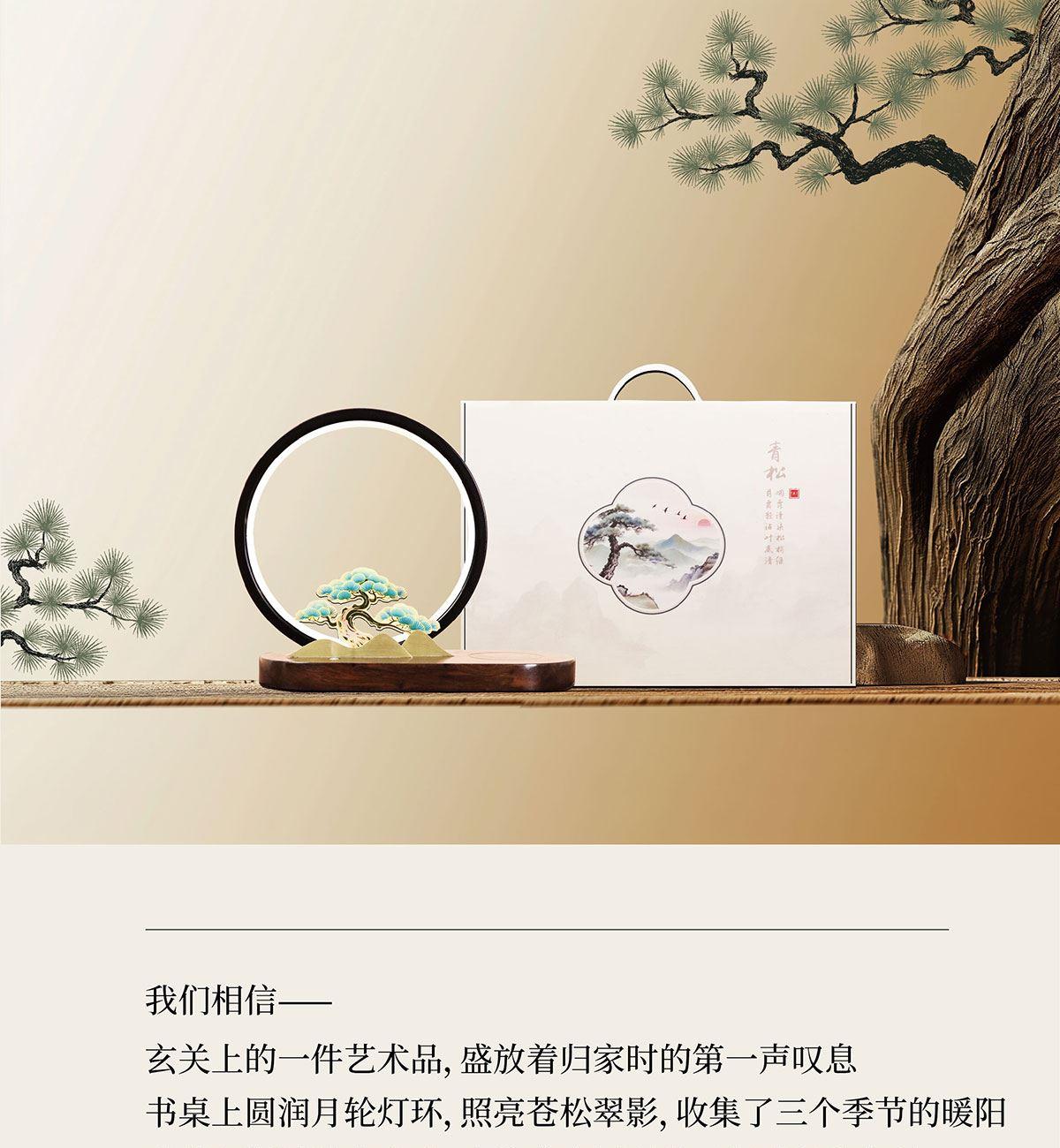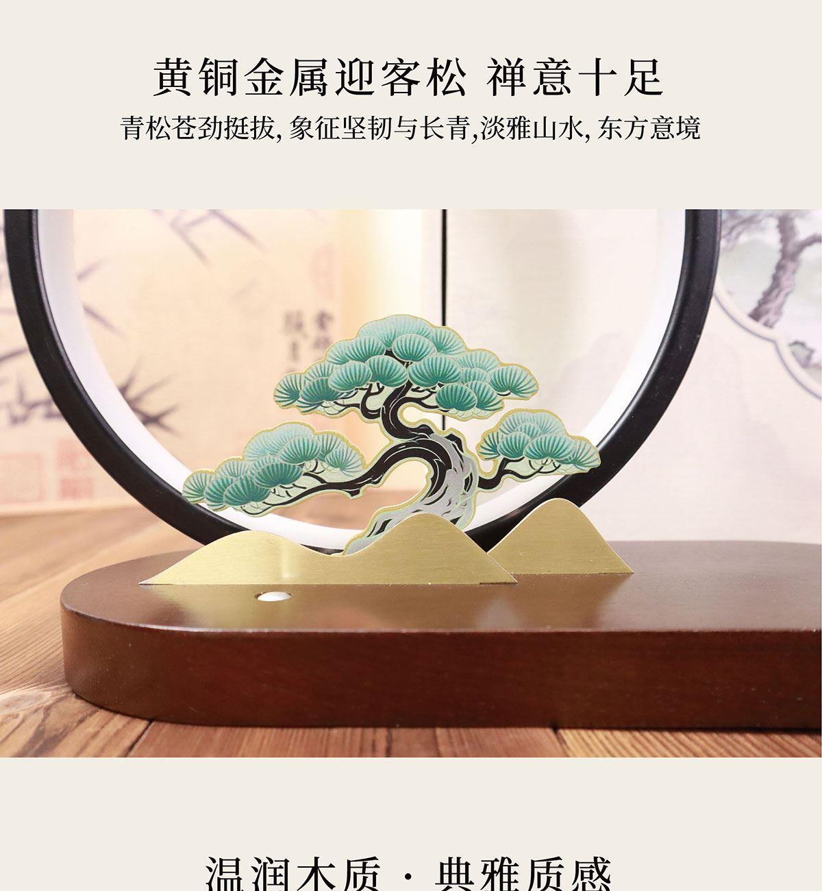 逐月青松 无线充松树灯摆件 配置功能 发光灯(暖光3档)15W手机无线快充底座L0G0定制 材质 主体:铝材、硅胶、黄铜金属片底座:沙比利木 尺寸 木质底座摆件规格:250x110x220mm手提盒尺寸:270x130x250mm