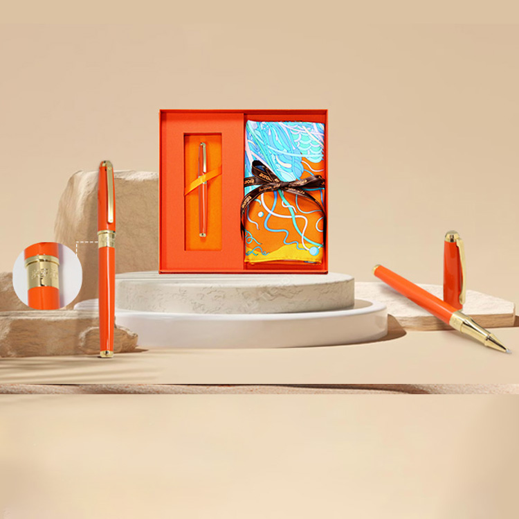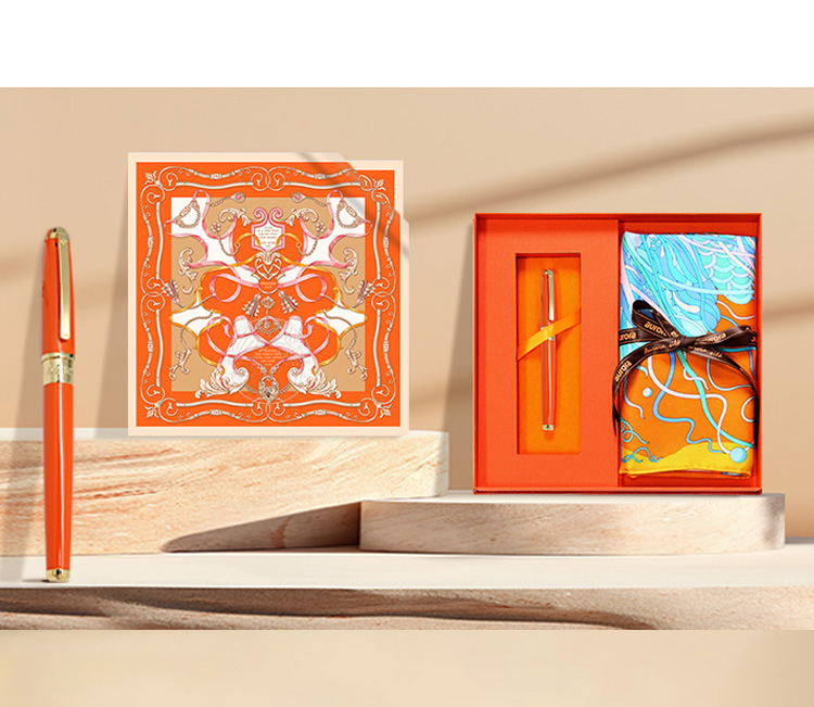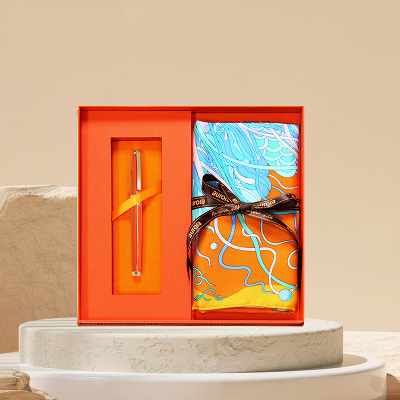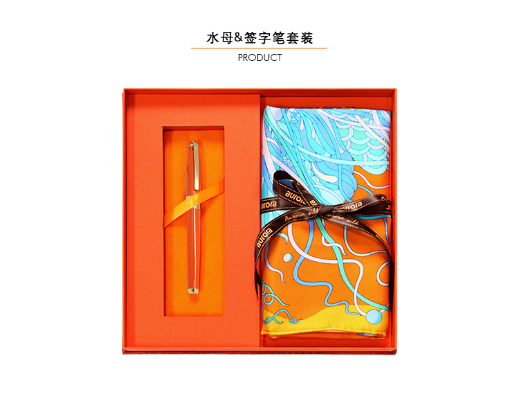 aurora系列水母真丝小方巾+商务金属签字笔套装礼盒