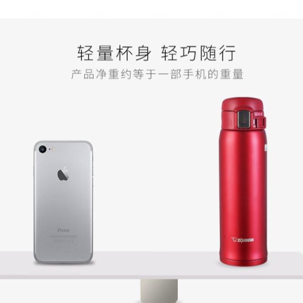品 牌:象印ZOJIRUSHI 型 号:SM-SS48 颜 色:BA黑色/RZ红色/NL香槟金 容 量:480ml 类 型:弹盖杯 材 质:304不锈钢 保 温:6小时约60°C 保 冷:6小时约10°C以下 产 地:泰国
