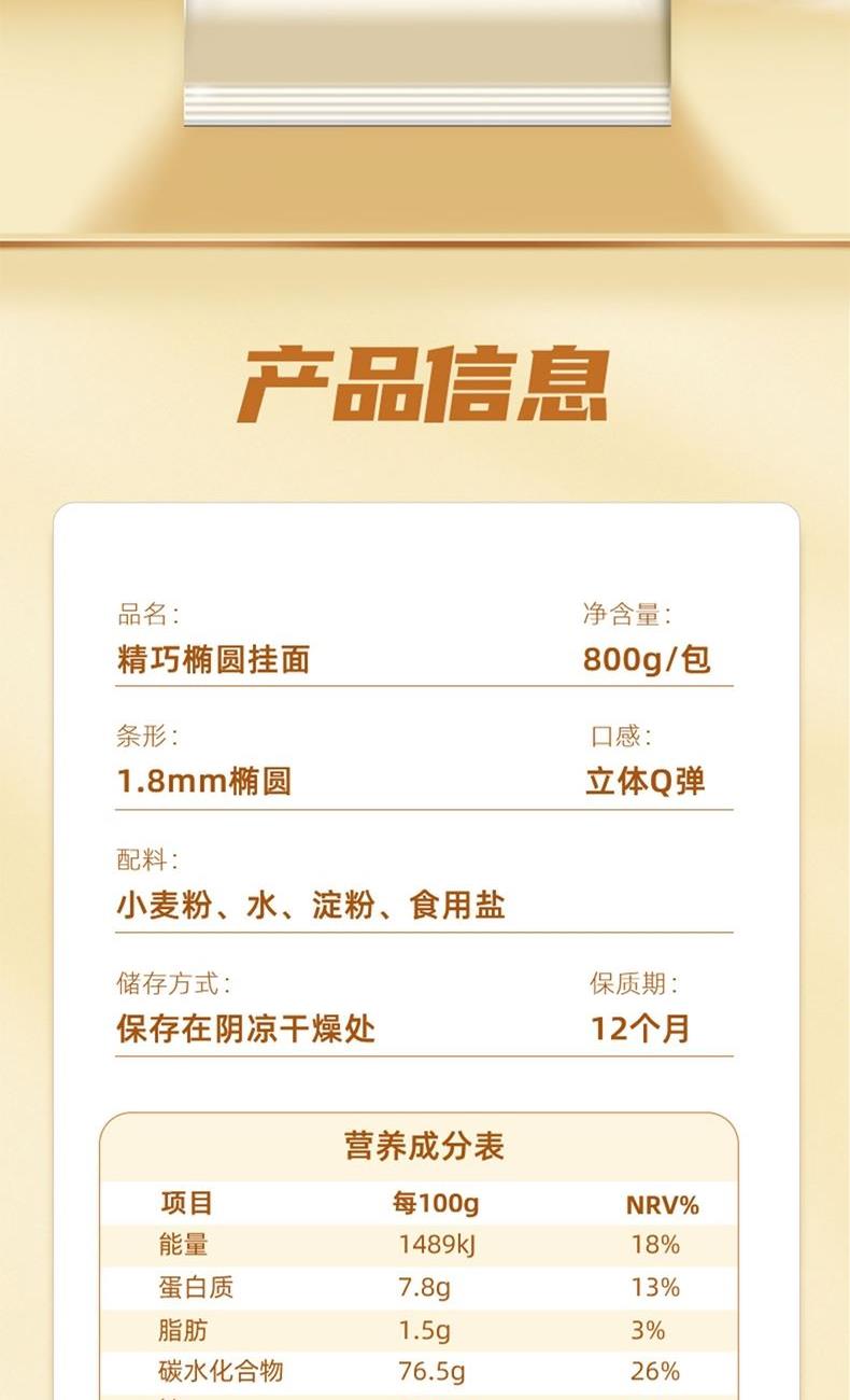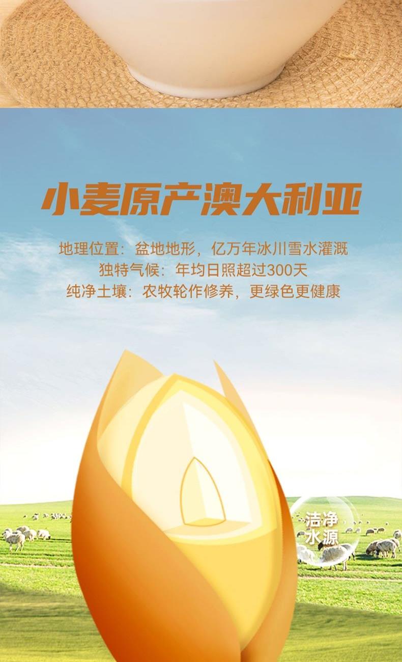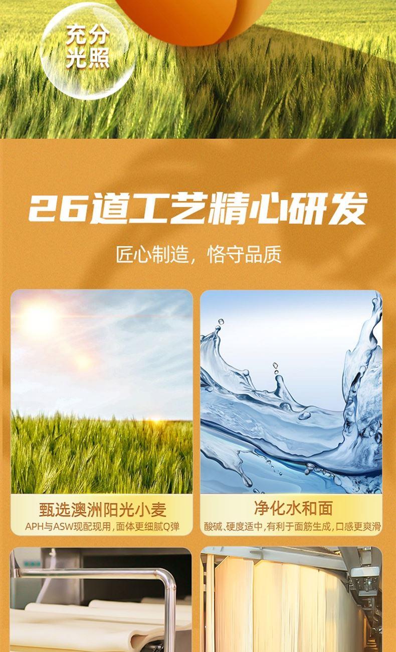 产品规格: 800g*4包 选用澳洲进口小麦粉 3蒸3醒,九道压延 中高温慢速烘烤, 立体Q弹柔滑