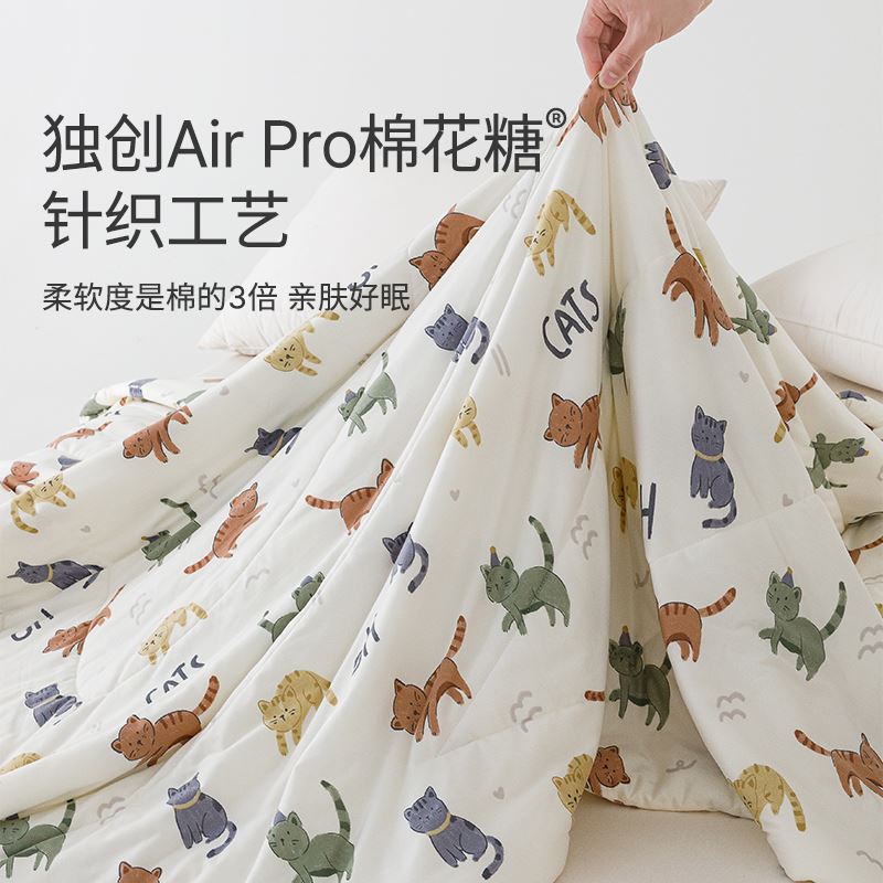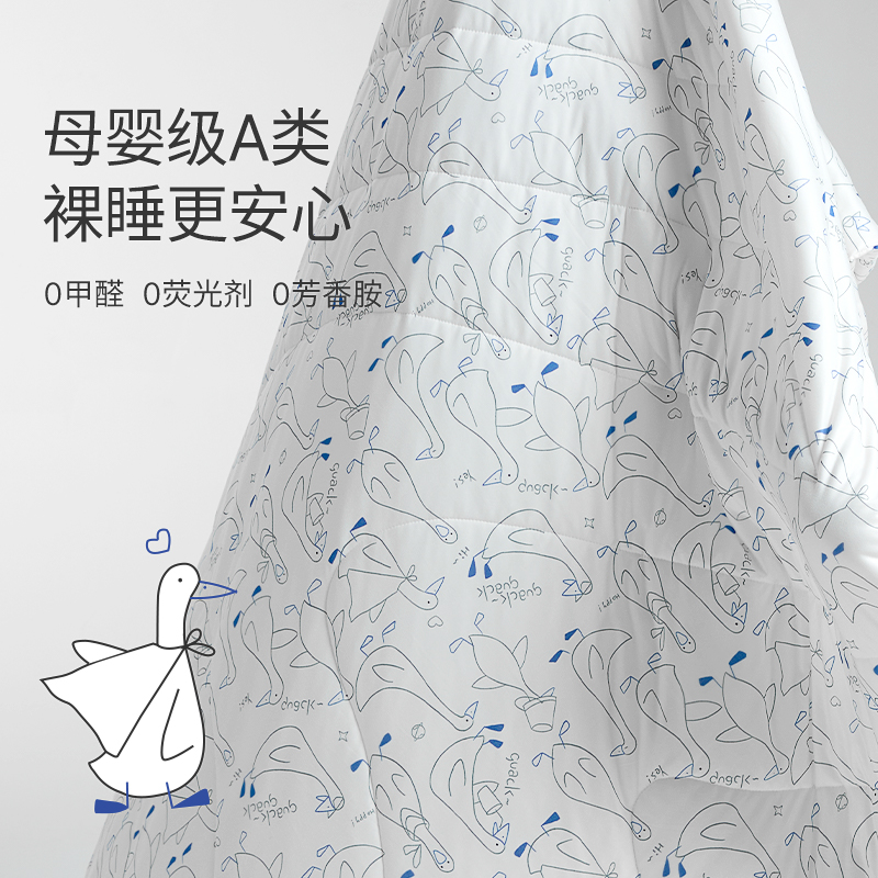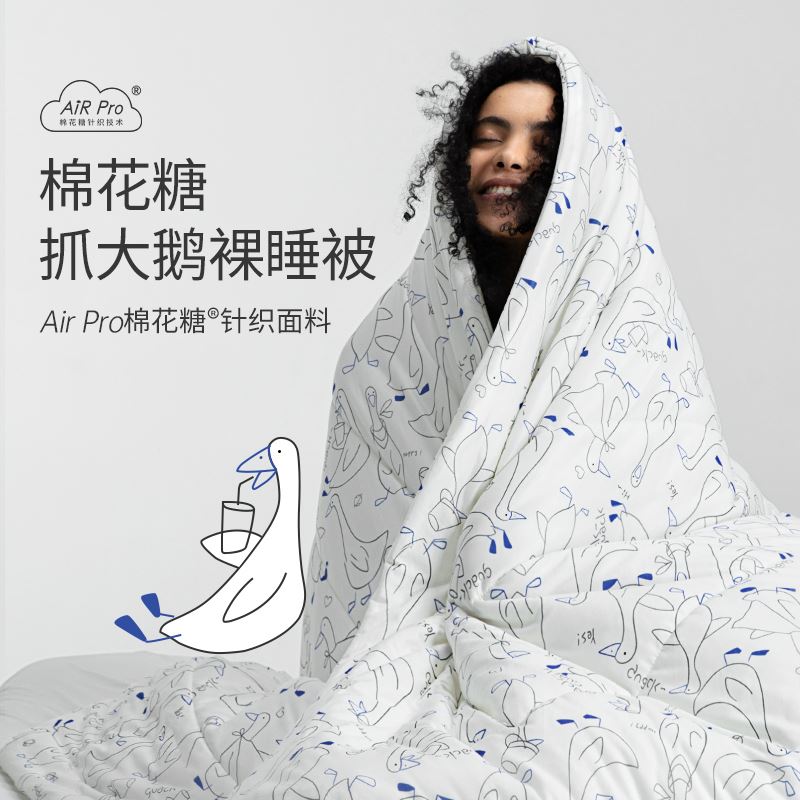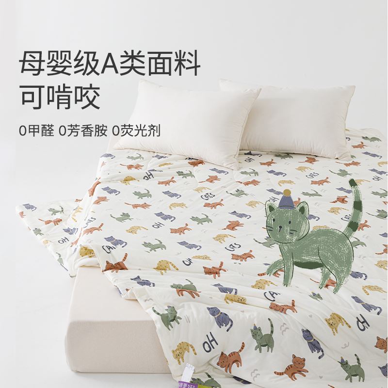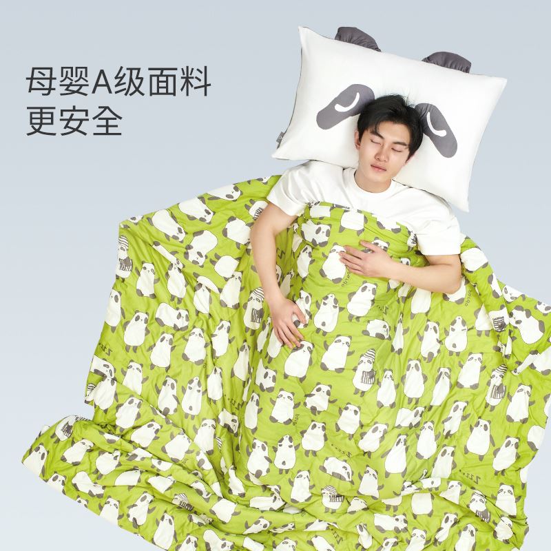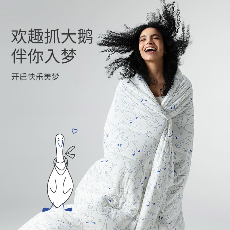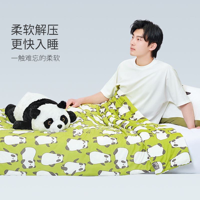 面料:95%聚酯纤维(云倍尔™科技纤维)+5%氨纶 规格:200*230cm 填充:聚酯纤维 填充重量:500g 花色:幸福耙耳朵-绿/白、瓜瓜、招财猫、抓大鹅 软,特别软,就是软FUFU~开启云感睡眠新享受,给足睡 眠安全感。采用艾美家云感纺纱科技针织织造; A类母婴级,0甲醛,0致癌芳香胺,0荧光剂,宝宝用好,你用也好。
