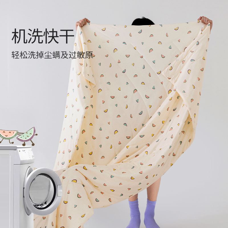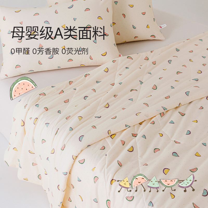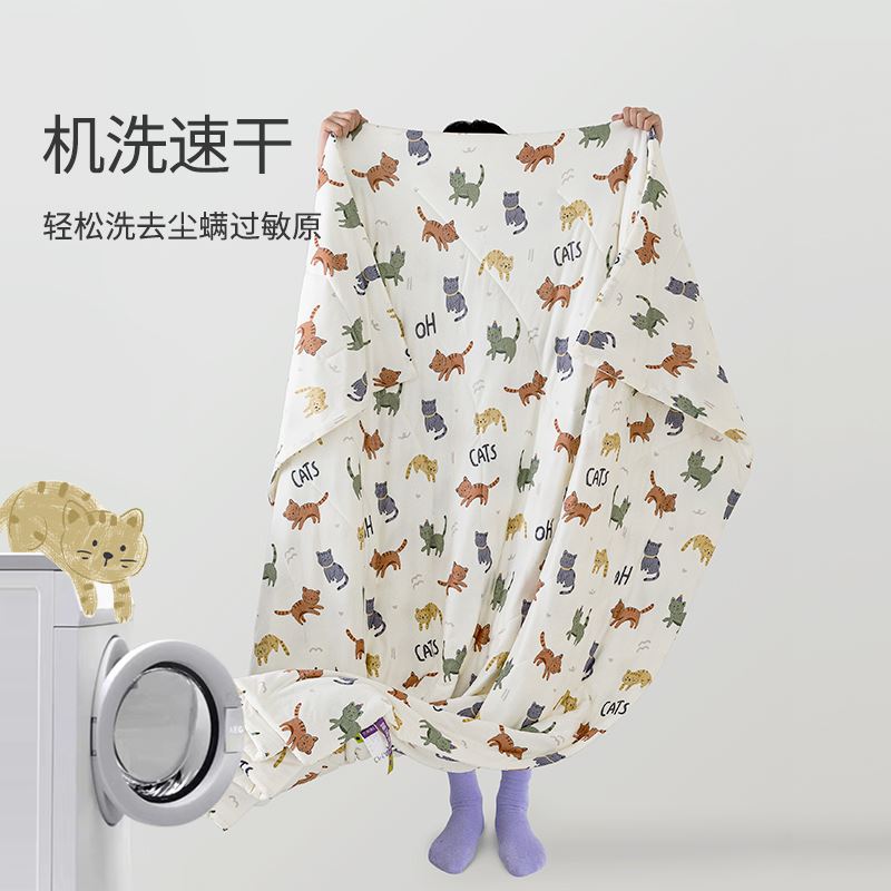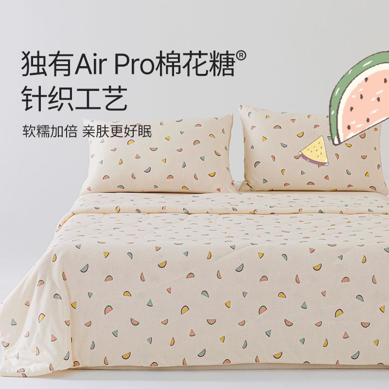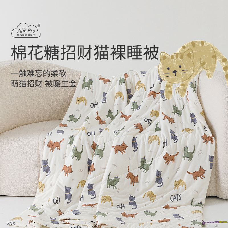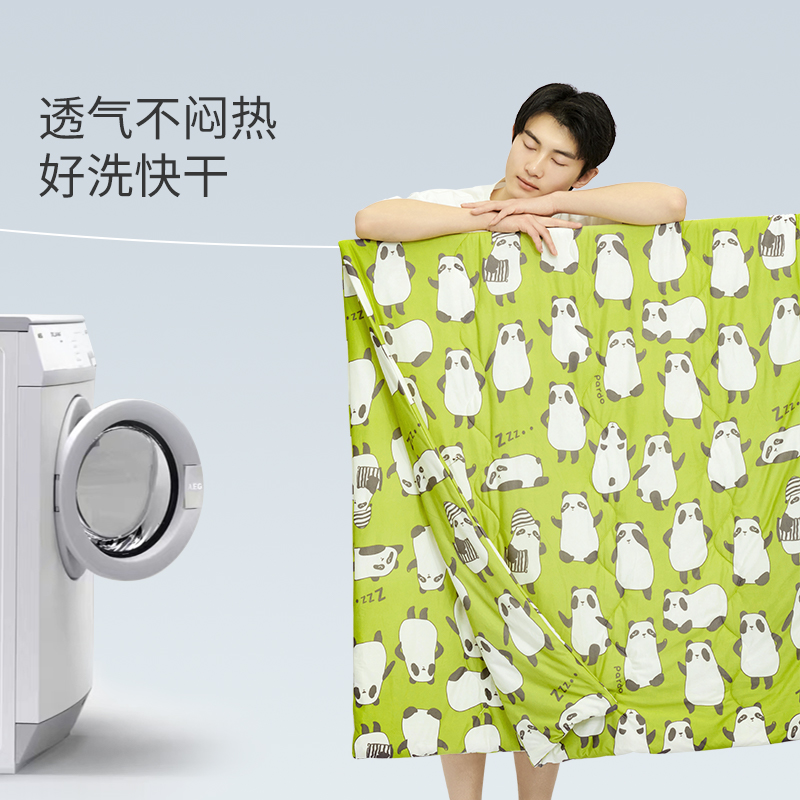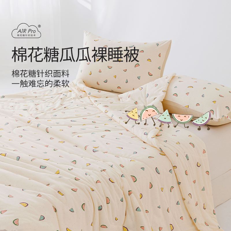 面料:95%聚酯纤维(云倍尔™科技纤维)+5%氨纶 规格:200*230cm 填充:聚酯纤维 填充重量:500g 花色:幸福耙耳朵-绿/白、瓜瓜、招财猫、抓大鹅 软,特别软,就是软FUFU~开启云感睡眠新享受,给足睡 眠安全感。采用艾美家云感纺纱科技针织织造; A类母婴级,0甲醛,0致癌芳香胺,0荧光剂,宝宝用好,你用也好。