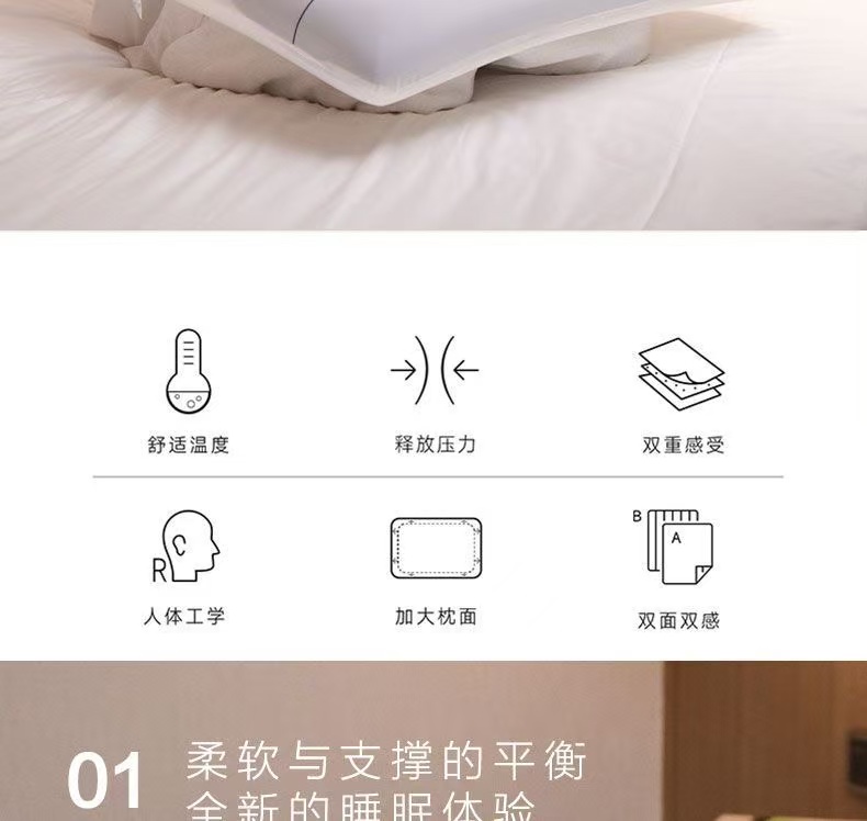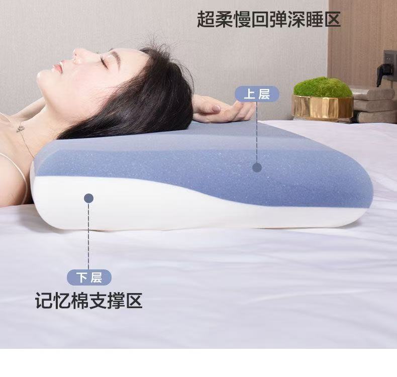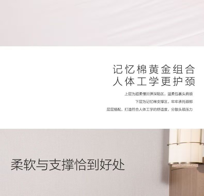 甄选涤氨面料,手感细腻,亲肤透气,立体感较好。 高弹性记忆海绵填充,快速回弹,不易坍塌。 枕套:涤氨面料 枕芯:40D高密度记忆海绵 尺寸:70*40*10cm