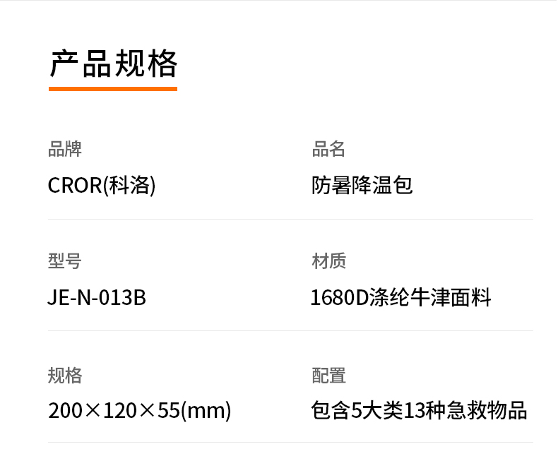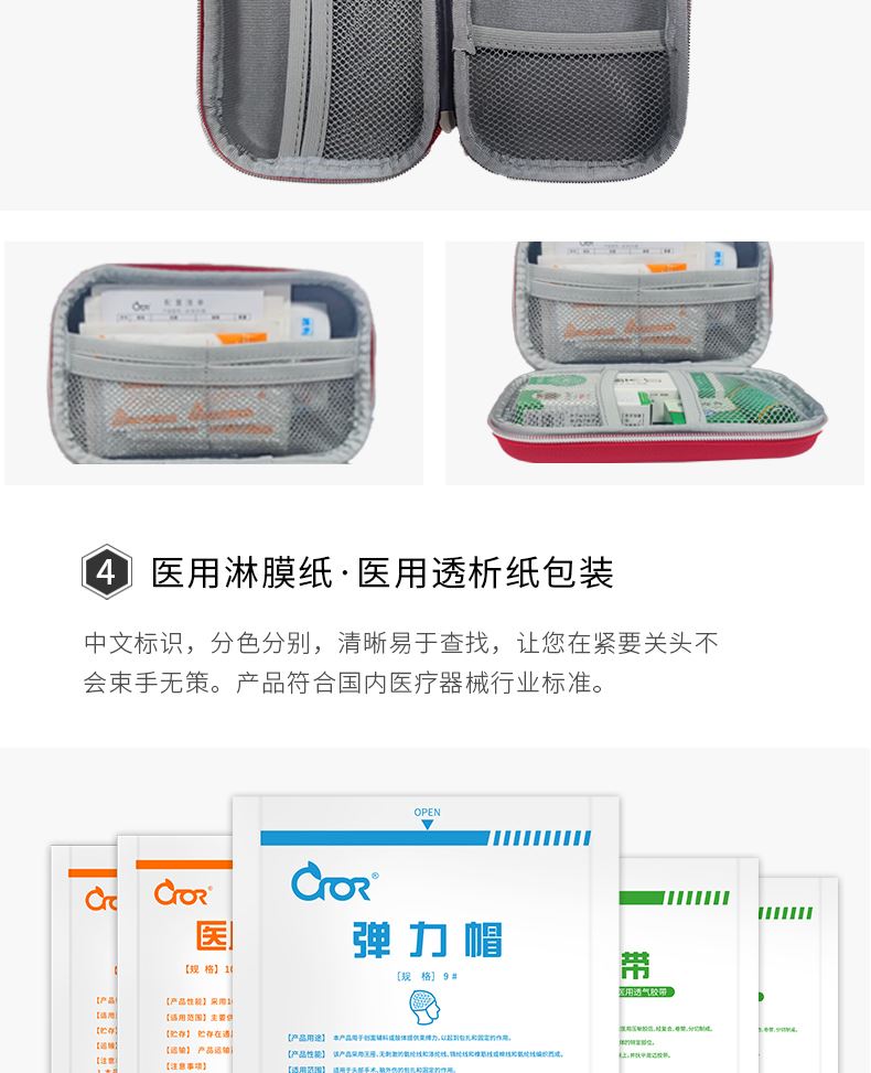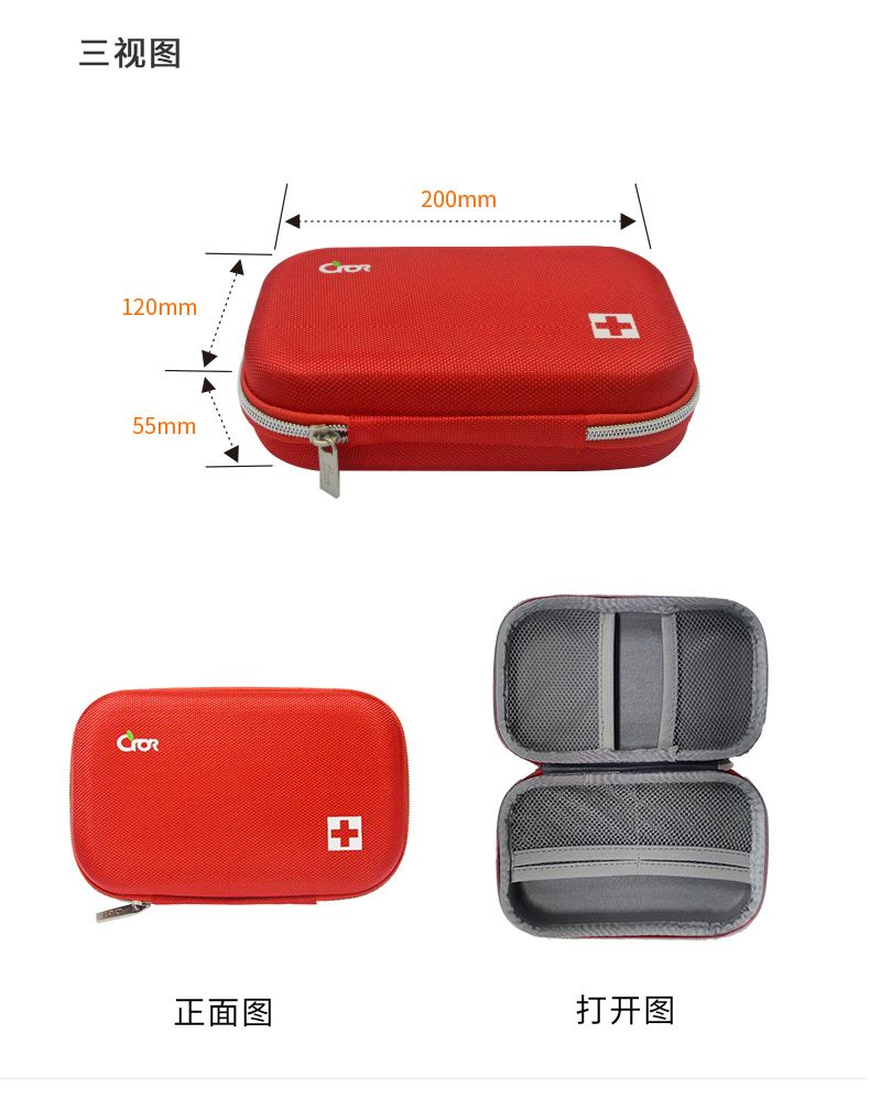 产品材质:300D灰色舞龙布(属牛津布) 产品规格:200*120*55mm 产品颜色:月影灰 产品配置:含4大类13种急救用品