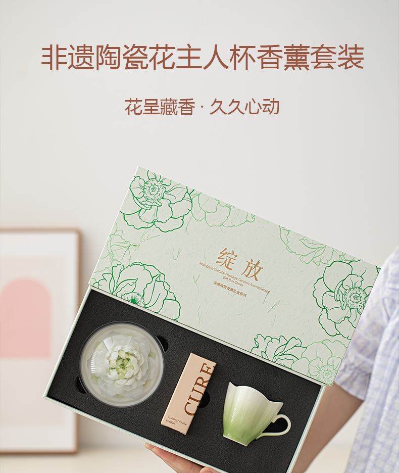 茶汀绽放非遗手捏陶瓷花主人杯香薰套装