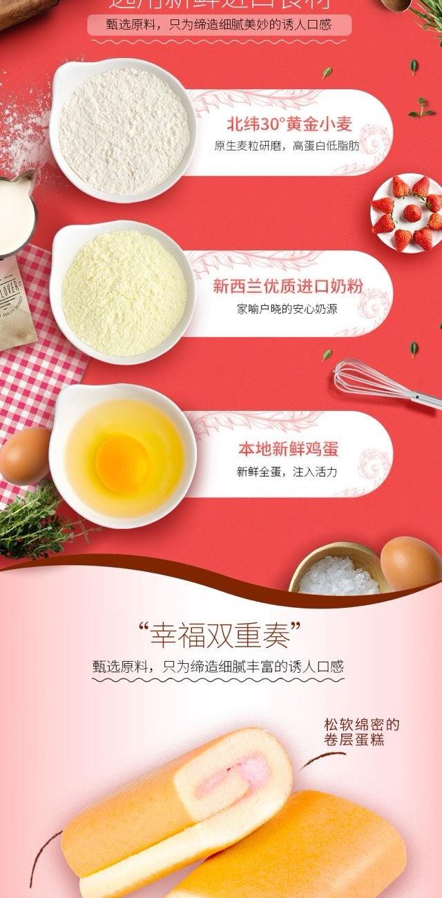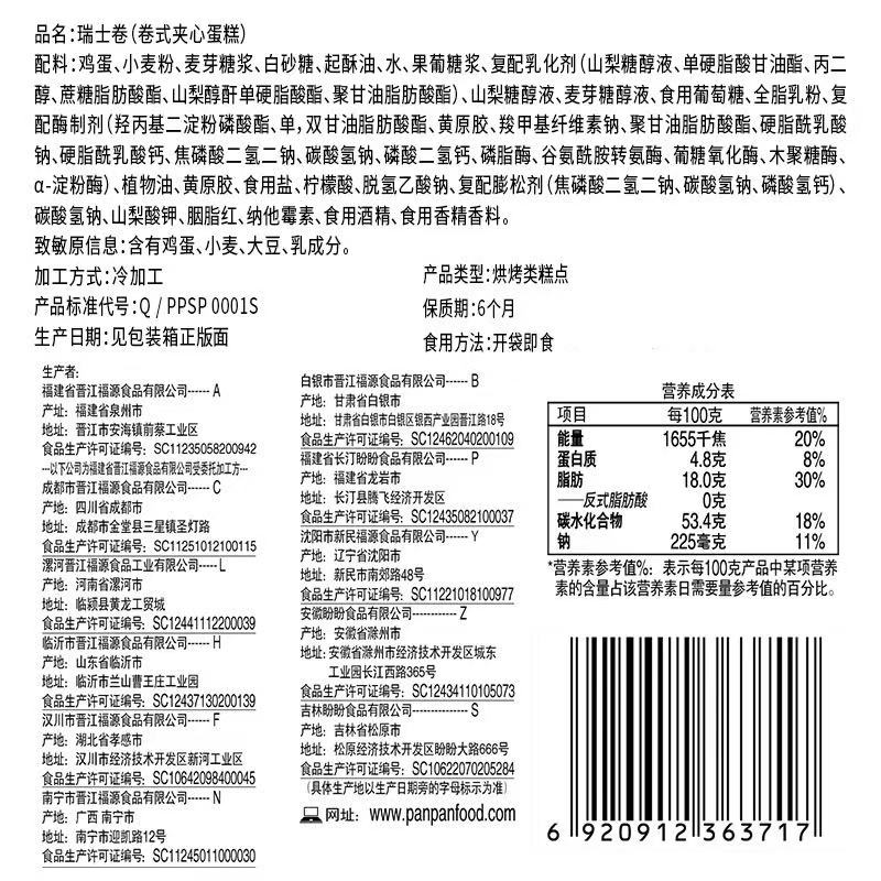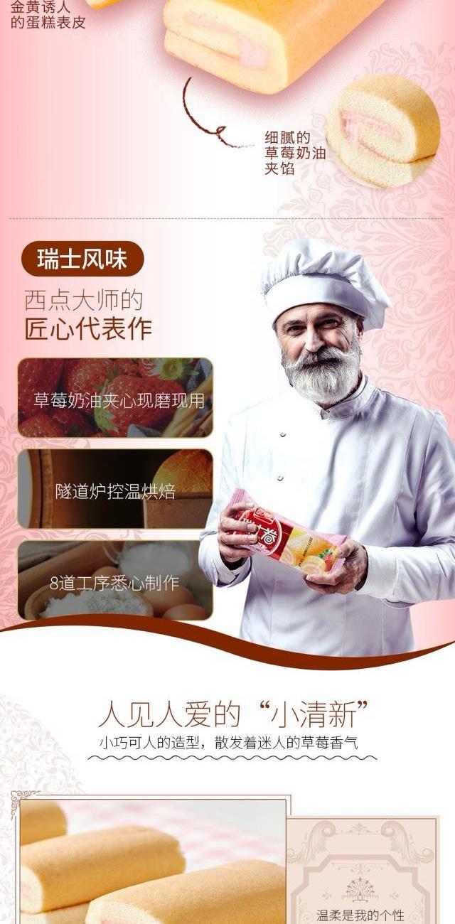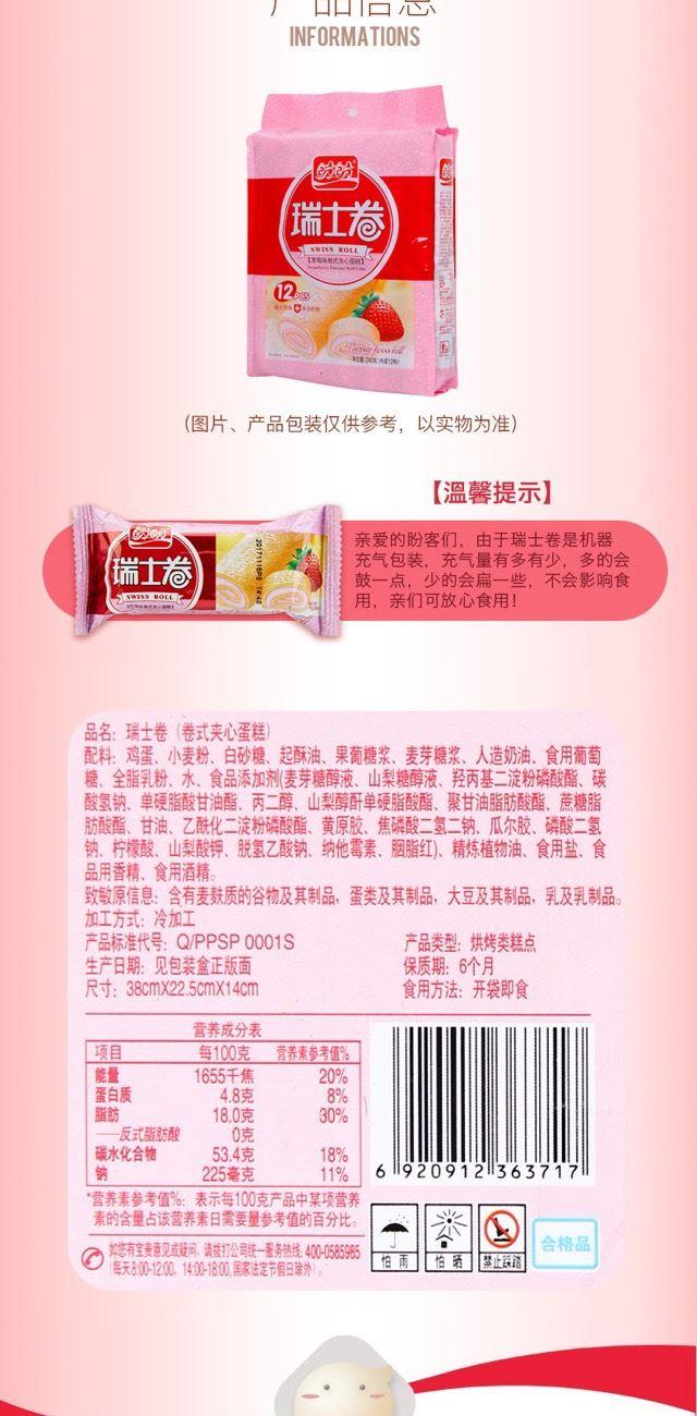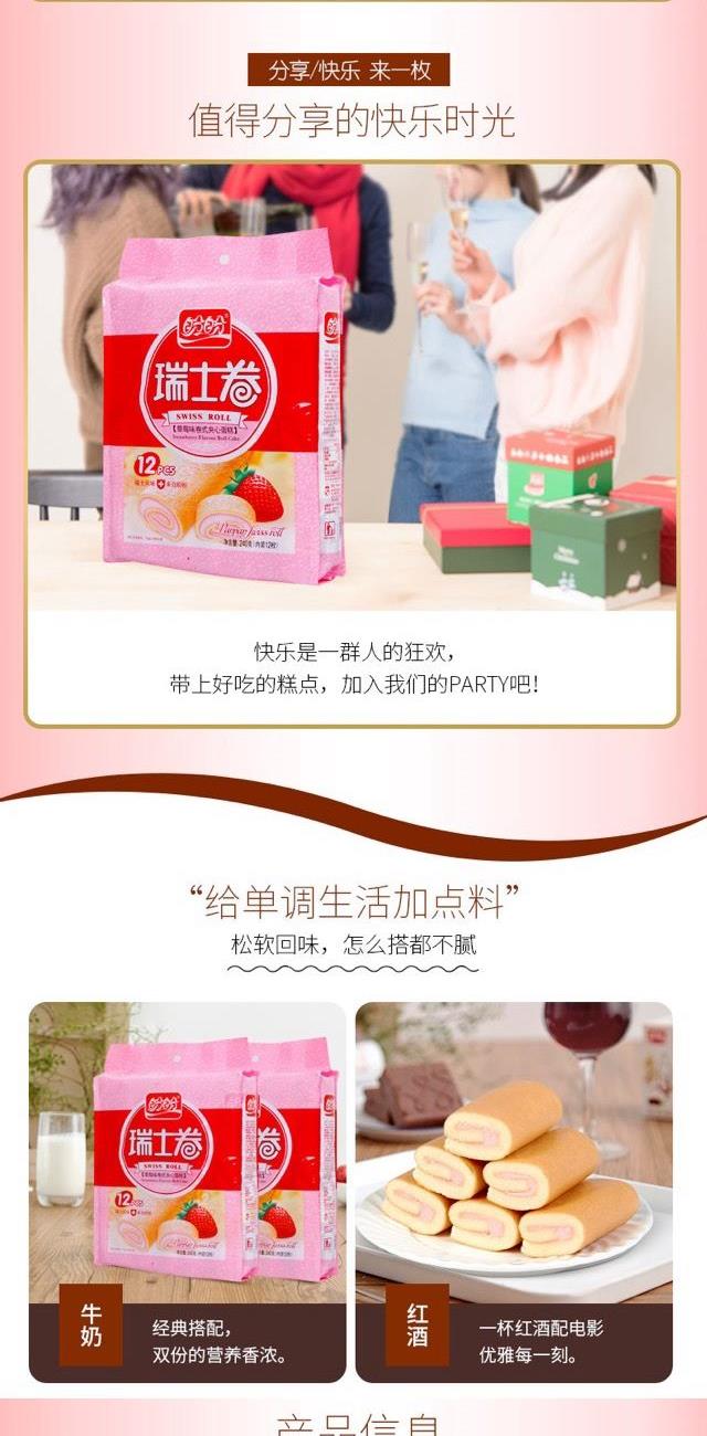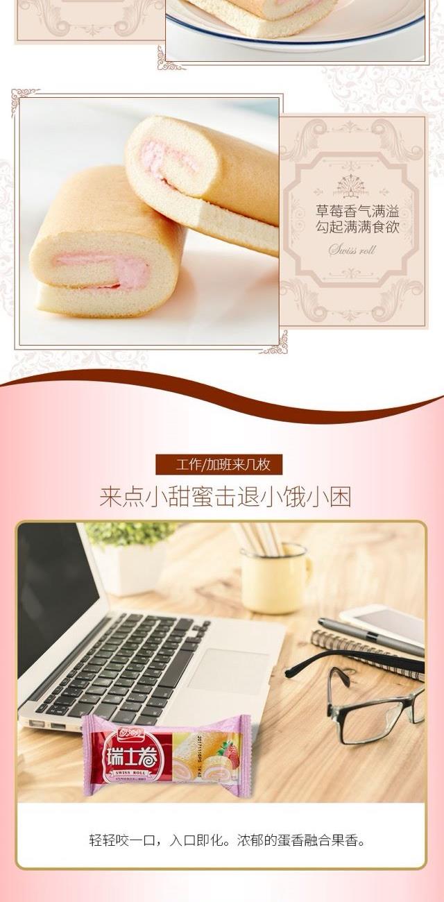 盼盼瑞士卷是一款经典的即食烘焙糕点。 它口感松软,内嵌草莓或香橙等风味的香甜注心。 产品多为独立包装或整箱销售,方便携带,可作为早餐、下午茶或办公休闲零食。 值得一提的是,它曾是北京2022年冬奥会的官方供应产品,其品质和口味受到认可。