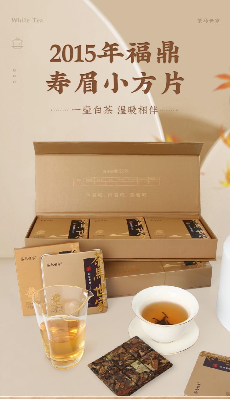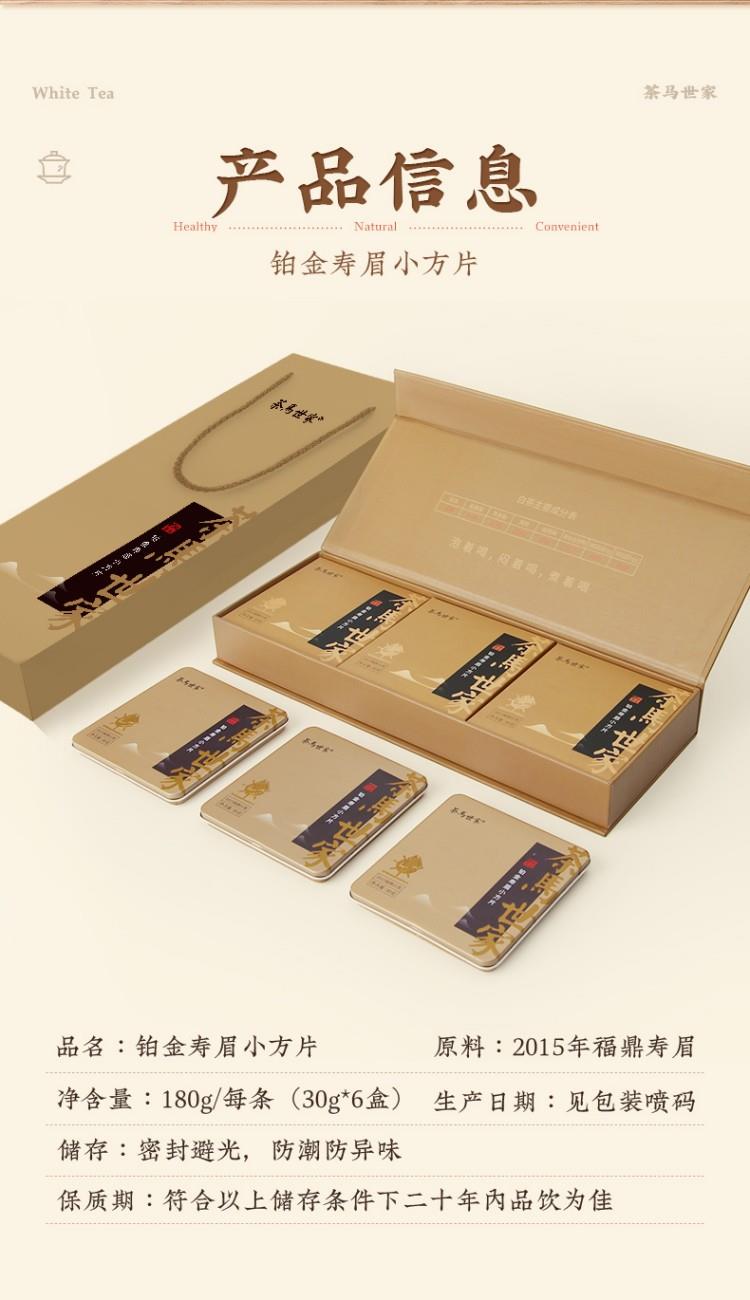• 茶马世家2015年福鼎铂金寿眉小方片礼盒装180g