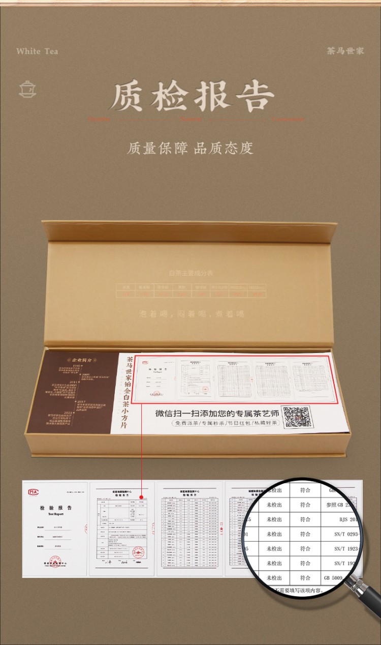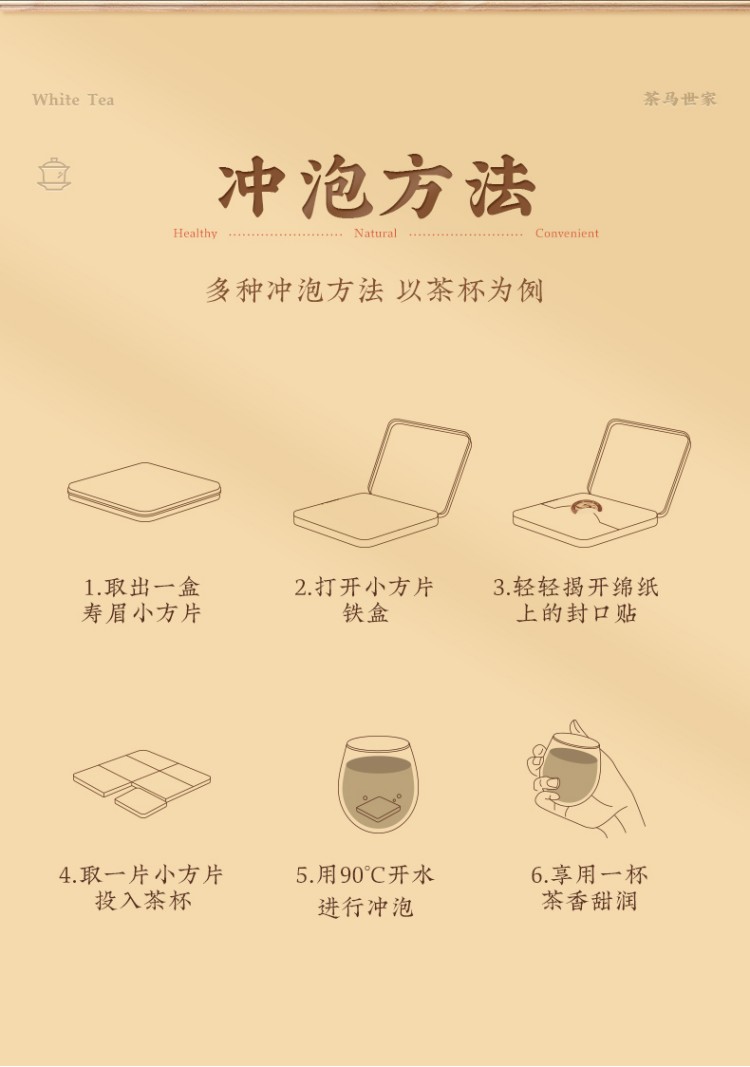 类别:核心产区福鼎寿眉白茶 规格:180g 包装:内置独立包装,礼盒装配手提袋 产品介绍: 1.2015年福鼎管阳镇寿眉原料压制小方片; 2.不做旧,香醇自然甜,有枣香、药香,干茶色泽黄褐,呈巧克力状,端正匀称,松紧适度,表面平整,香气纯正。 3.经历七年陈化,香甜醇滑逐渐显现,清甜甘香,茶性已经朝着温润转变。陈韵香气自然,变化层次分明。而随着时间的推移,它的汤感会越发饱满,香气也会逐年沉稳。对标市场同类白茶,性价比高,高品质原料,详细的审评报告