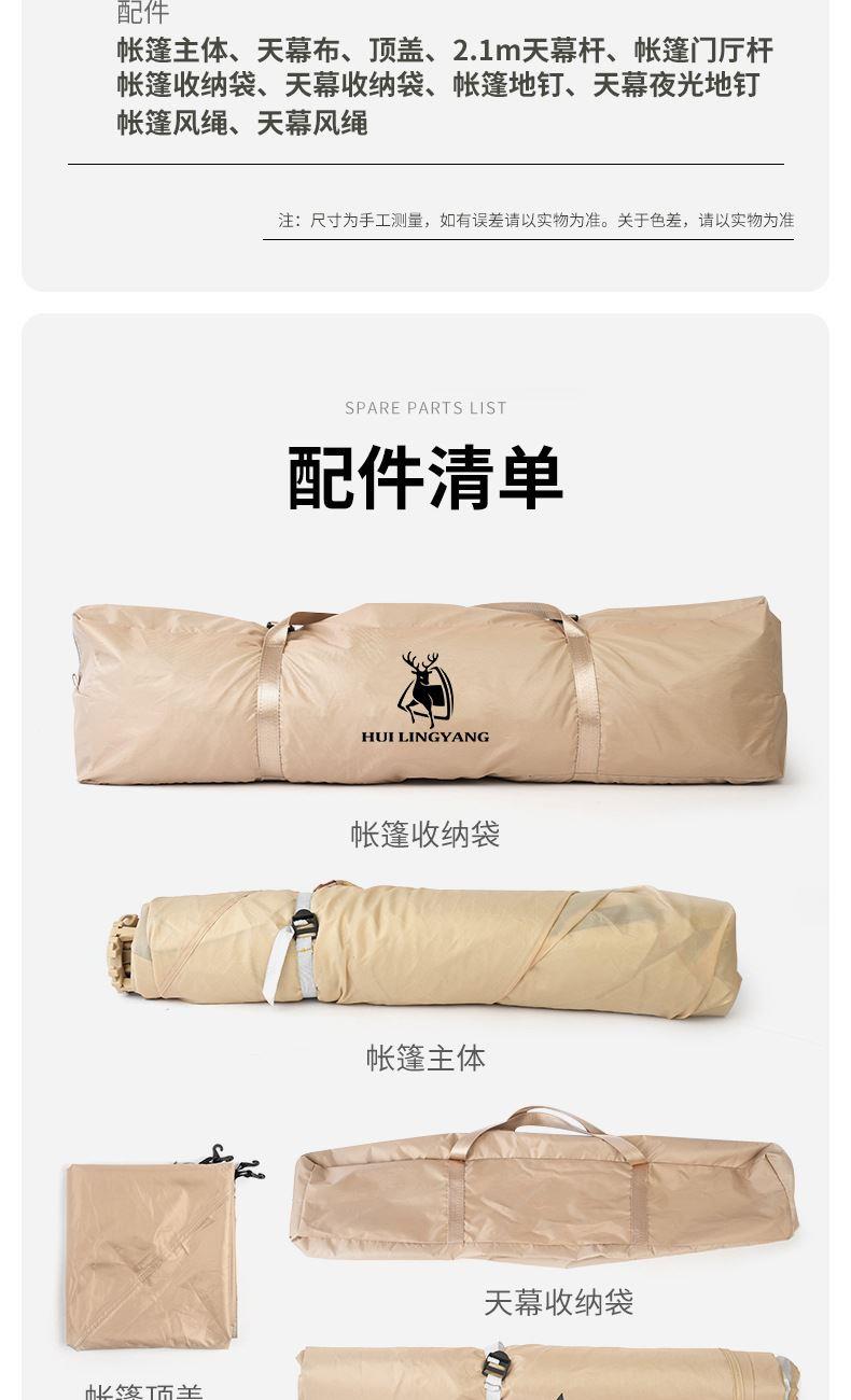 徽羚羊云海帐篷天幕二合一银胶210*210cm流沙金