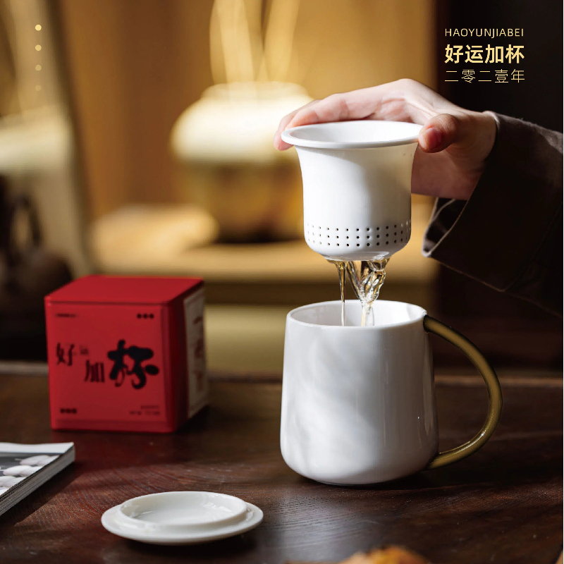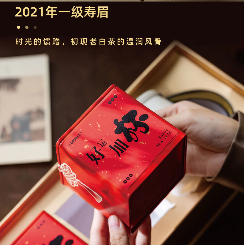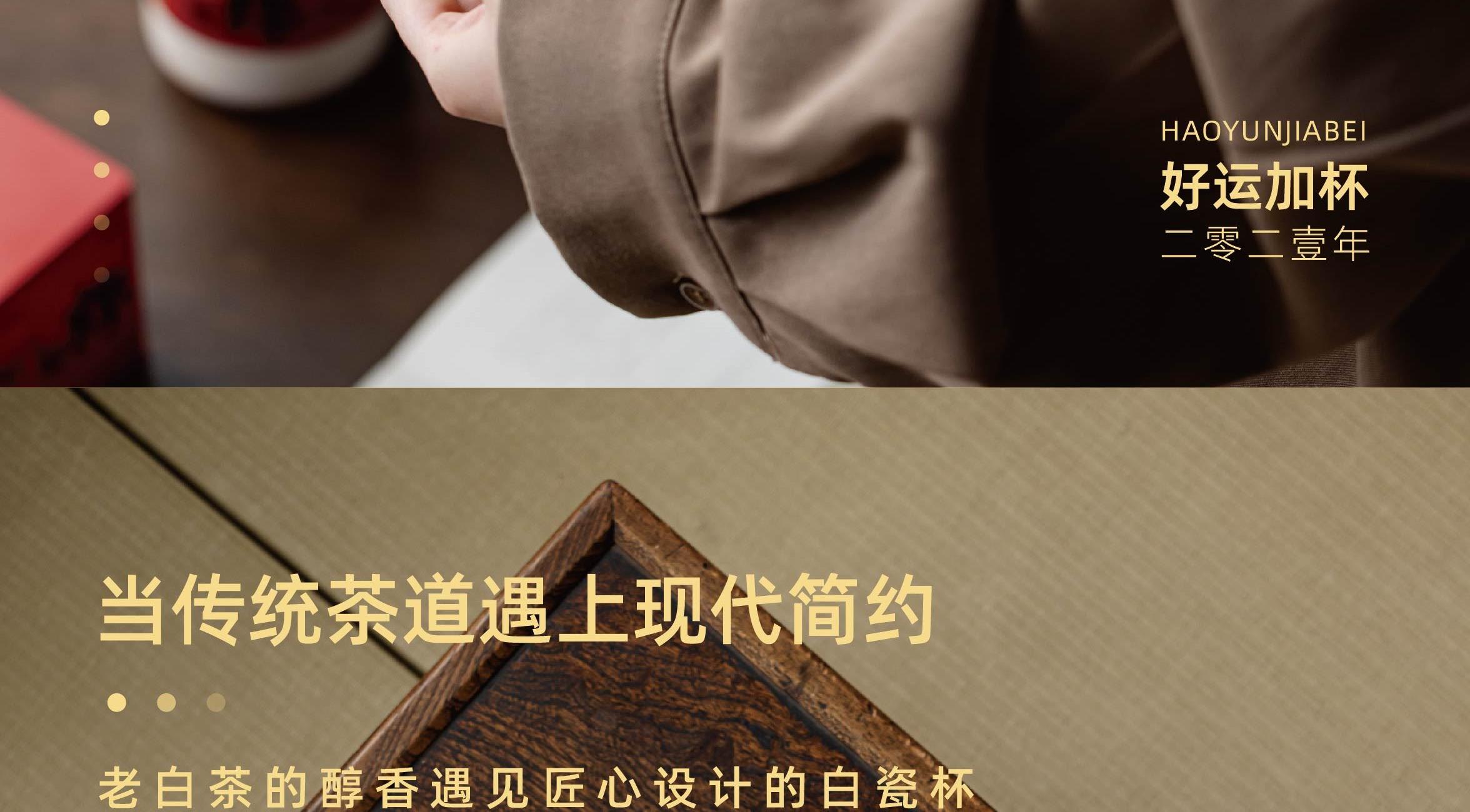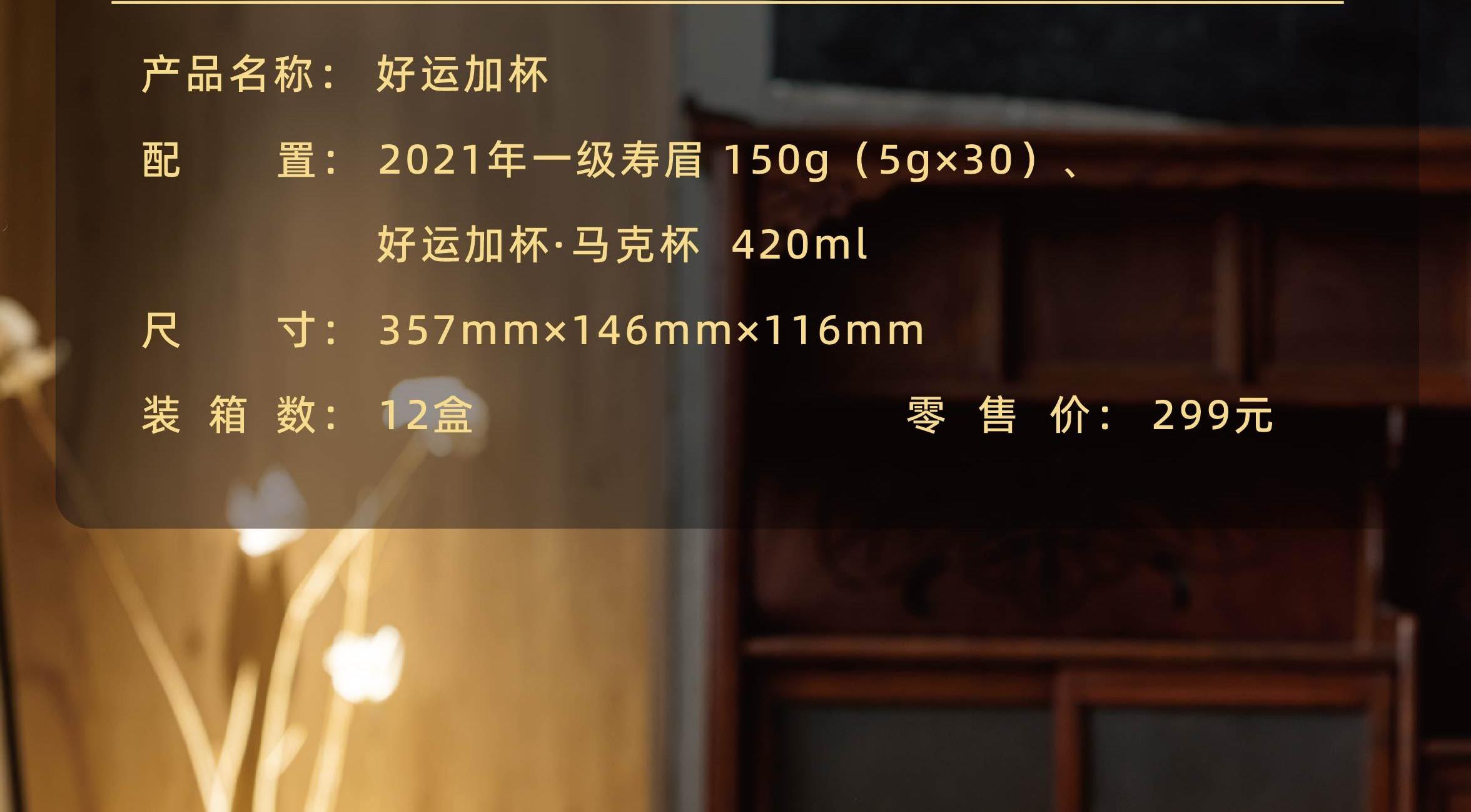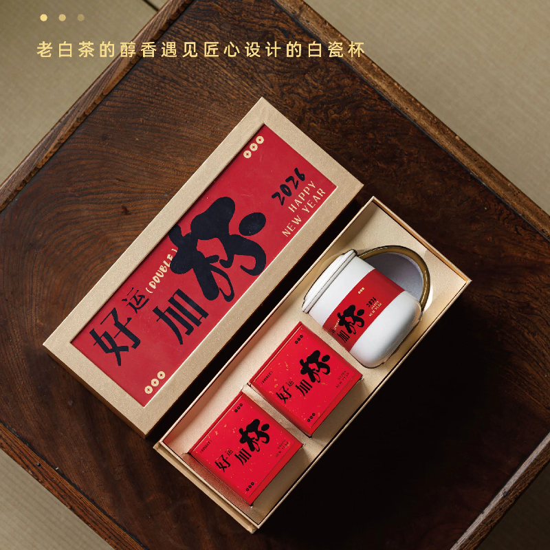 内含2021年福鼎白茶一级寿眉150g(5g*30泡)高白瓷好运马克杯1个,质感满满的金色礼盒,画面以喜庆的红色呈现出来。当传统茶道遇上现代简约。老白茶的醇香搭配匠心设计的白瓷杯恰好融合。贴心设计,细节满分!!好运上上签,好事加杯!