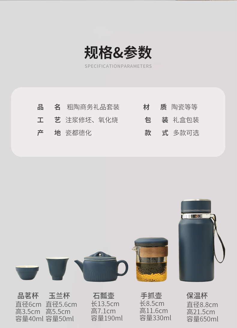 壶:13.5*7.1厘米190ml 品茗杯:5.6*5.5厘米50ml 礼盒:48*12*23厘米 一件代发,一套起定,千度煅烧高温成瓷,无铅铬,暖心配置,商务实用,包装礼盒轻奢商务,搭配礼盒包装,自用赠礼两宜