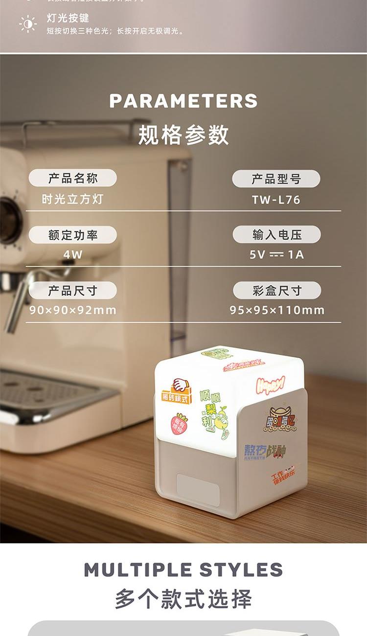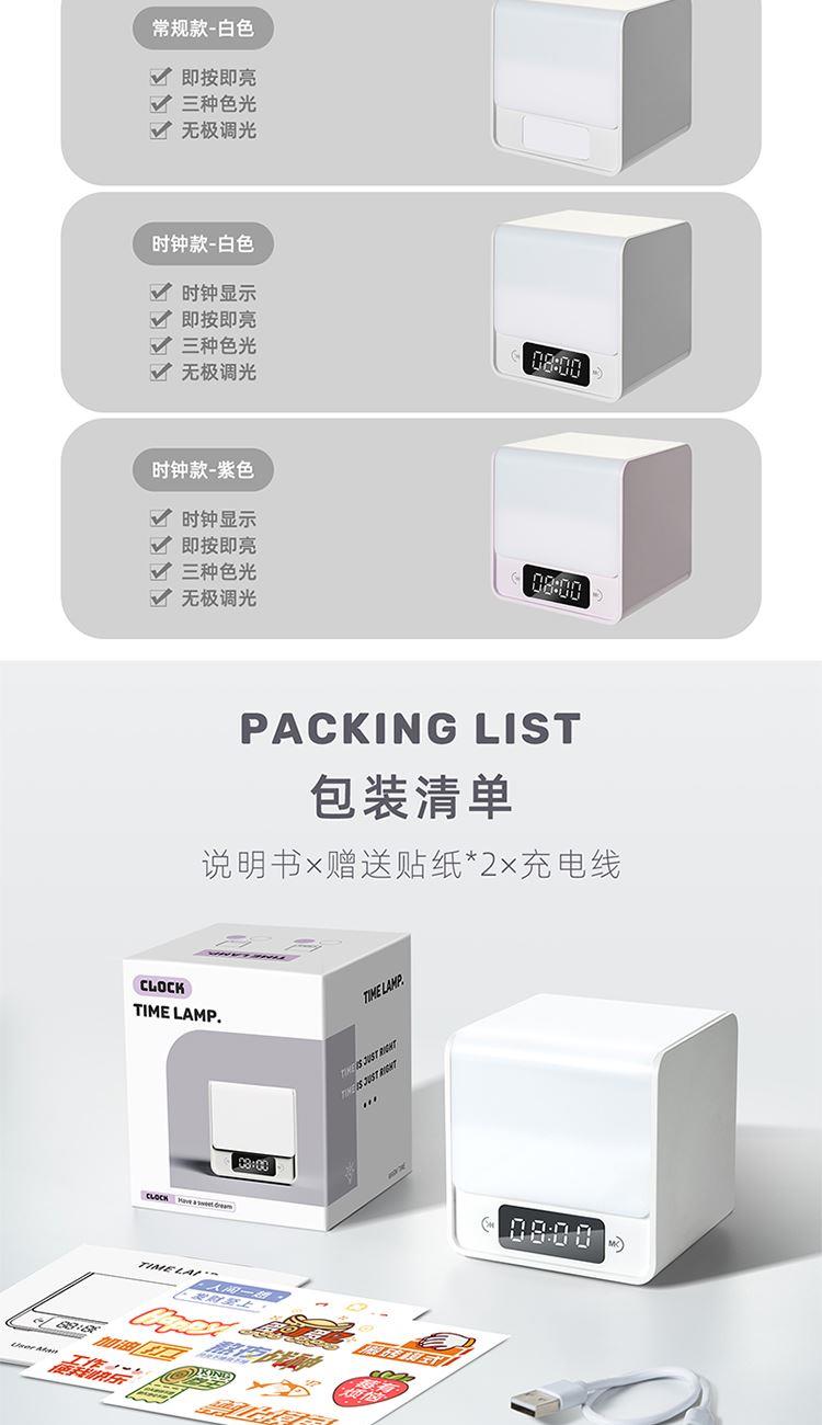 氛围夜灯 按压亮灯 三种光色 无极调光 内置电池