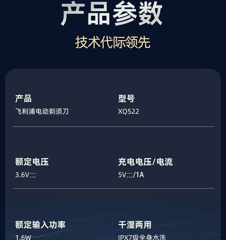 飞利浦全新5系蜂巢X系列电动剃须刀XQ522