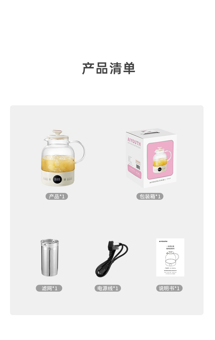 艾青春一体养生壶AI-YSH216(带滤网)