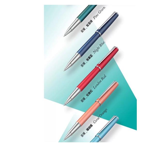 型号:星耀系列签字笔 类型:可替换芯宝珠笔 重量:墨水/宝珠笔25g/30g 颜色分类:曜夜黑金/曜夜黑银/黎雾灰/松苔绿/夜幕蓝/伦敦红/珊瑚橙/云雾白尼斯蓝/丁香雪 书写粗细:0.6mm 整笔材质:铝铜 笔盖:卡扣嵌套设计 笔握:24mm中距笔握 套餐类型:官方标配 方式:鸿运笔芯笔记本礼盒装 适用场景:送礼书写 适用人群:文艺青年 笔杆材质:金属 笔身纹理:磨砂