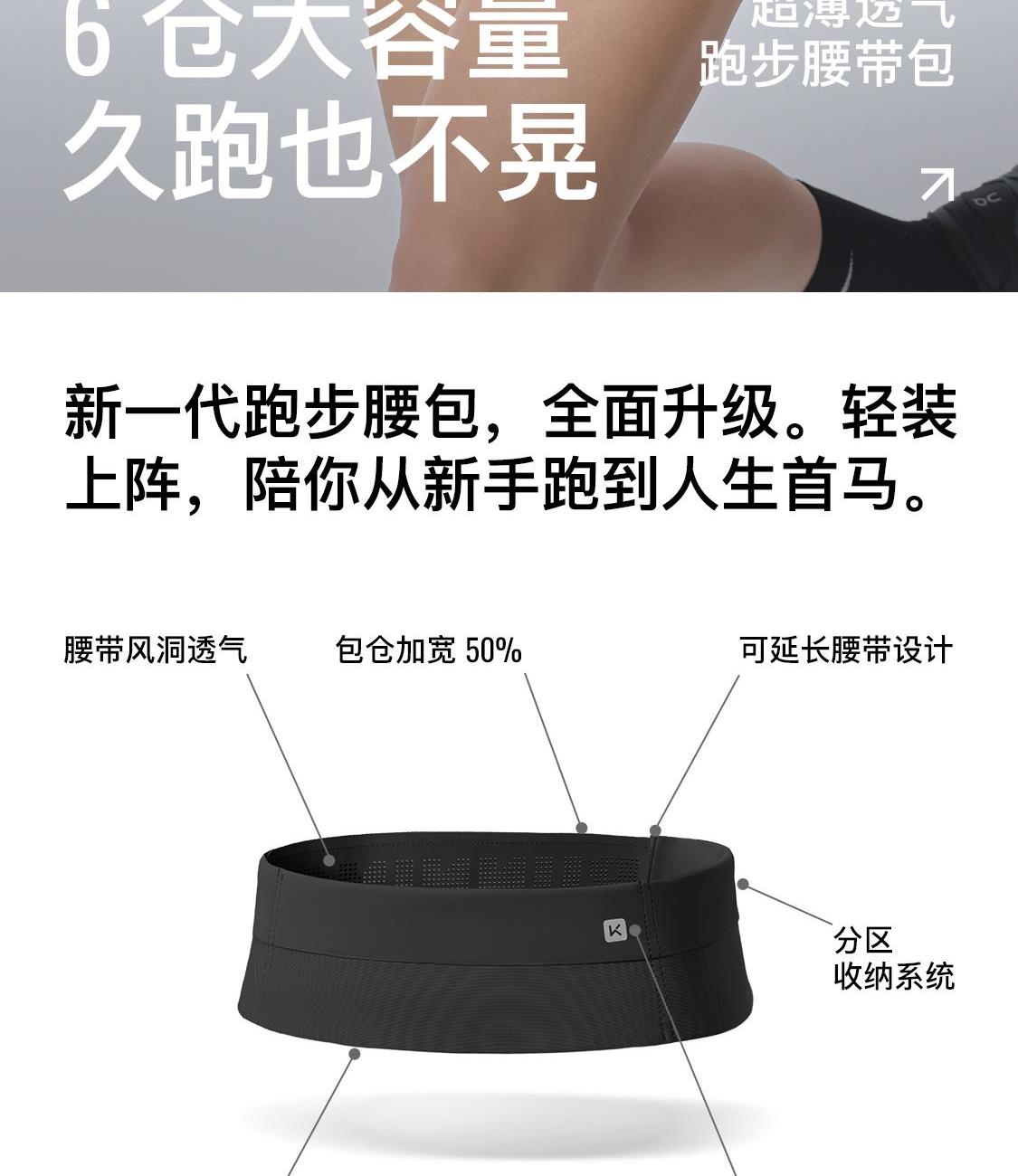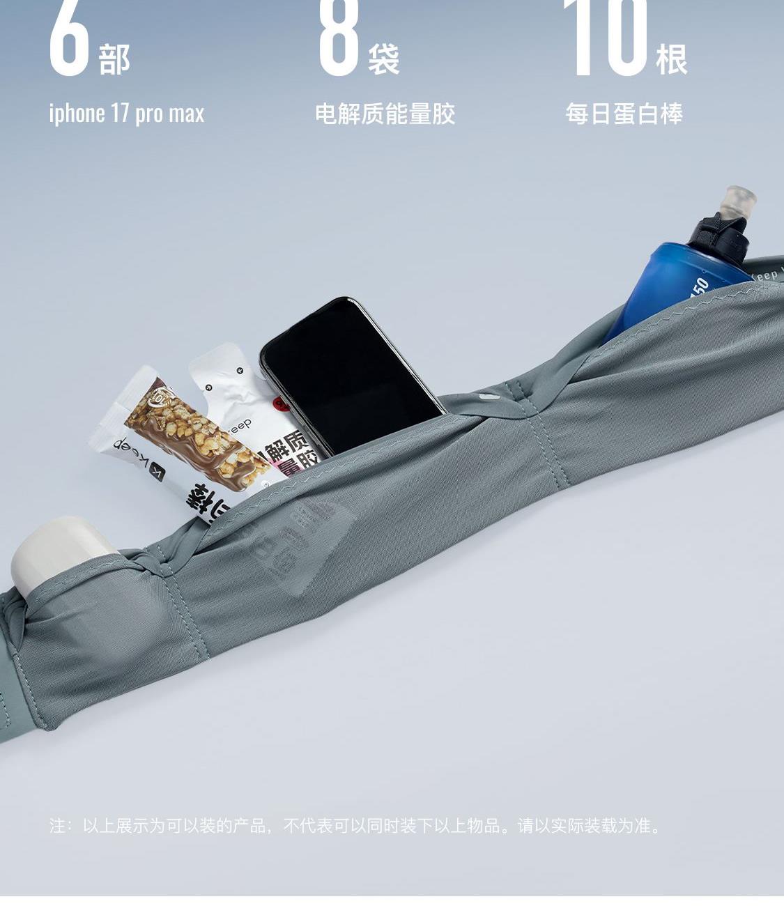 尺寸:62-102cm(配腰围延长带) 材质:锦纶、氨纶、聚酯纤维 4个主仓,2个副仓,无拉链设计,取放更方便;可放下6部iphone,约560个风洞,久跑不闷;3A级kang菌材质,无甲醛无异味; 轻至84g(鸭蛋重量)