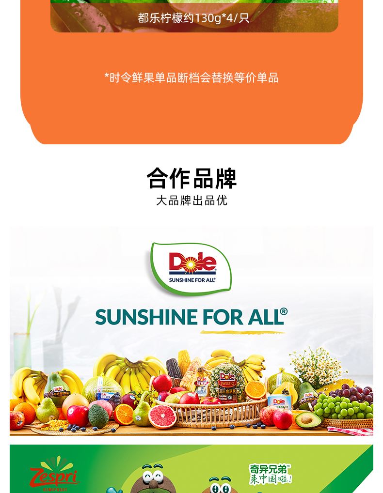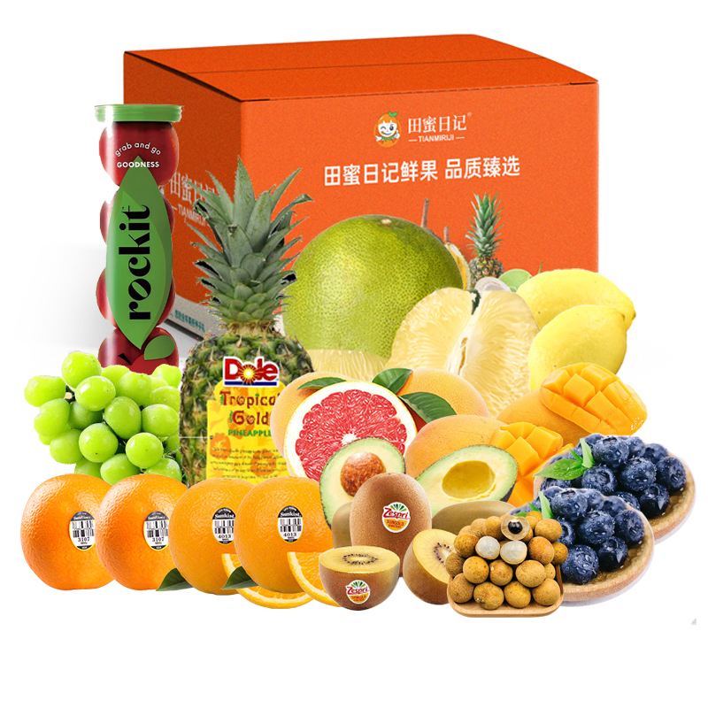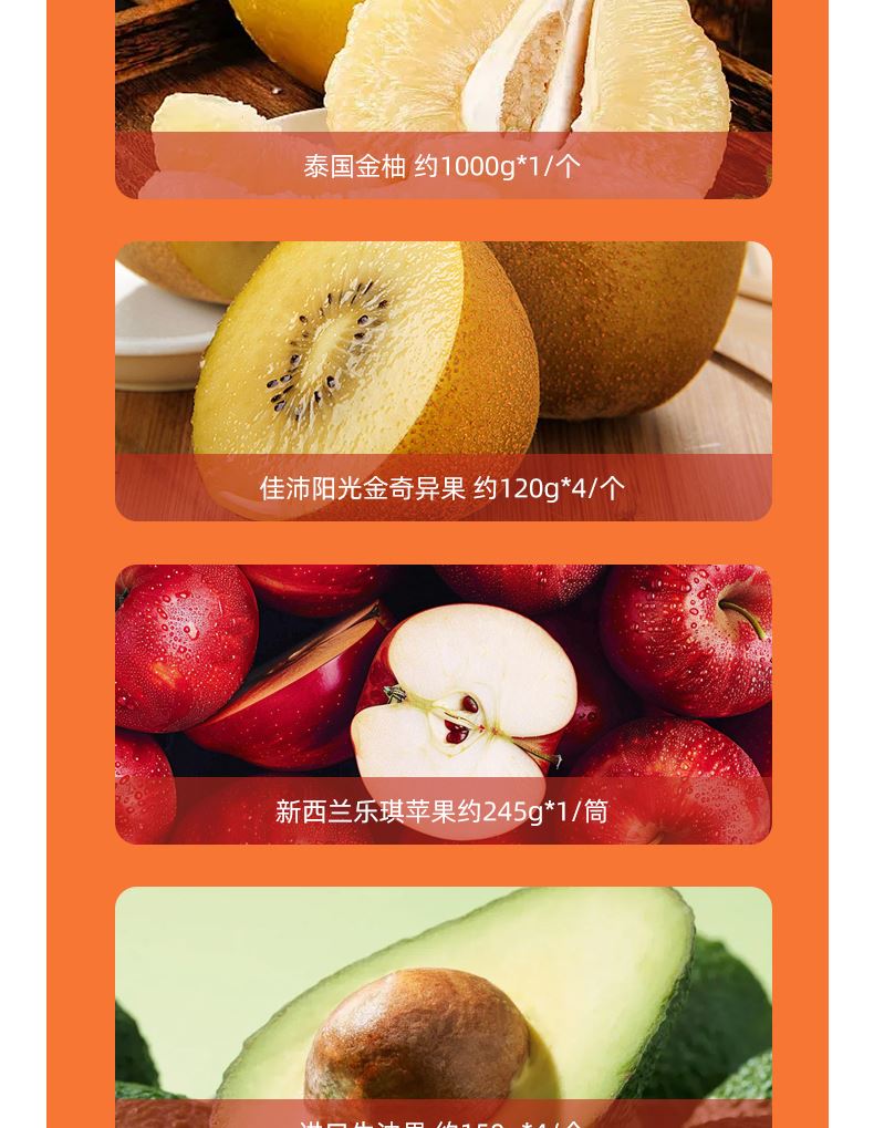 "都乐\佳农进口菠萝约1200g*1/个 泰国金柚 约1000g*1/个 佳沛阳光金奇异果 约120g*4/个 新西兰乐琪苹果约245g*1/筒 进口牛油果 约150g*4/个 新奇士进口甜橙 约220g*4/个 时令芒果约500g*1/盒 进口龙眼约500g*1/盒 进口西柚约300-350g*2/个 阳光玫瑰葡萄约500g*1/盒 蓝莓18mm+ 约125g*2/盒 都乐柠檬约130g*4/只 ( 时令鲜果单品断档会替换等价单品)"