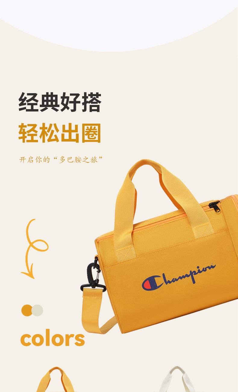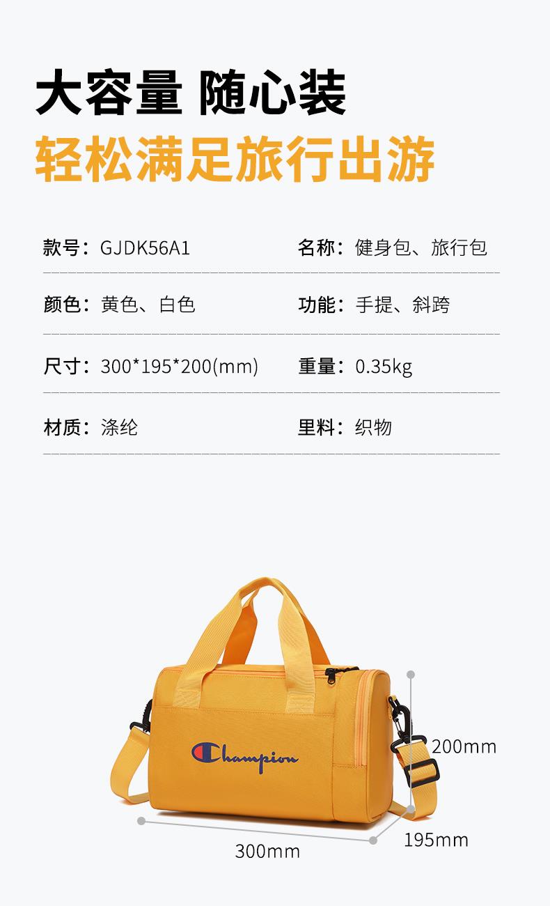 类别:旅行包 颜色:白色/黄色 面料:织物 里料:织物 闭合方式:拉链 尺寸:300*195*200mm 吊牌价 : 210元 适用场景:日常包 上市时间:2025年秋季 类别:健身包 包袋大小:小包 适用人群:男女通用