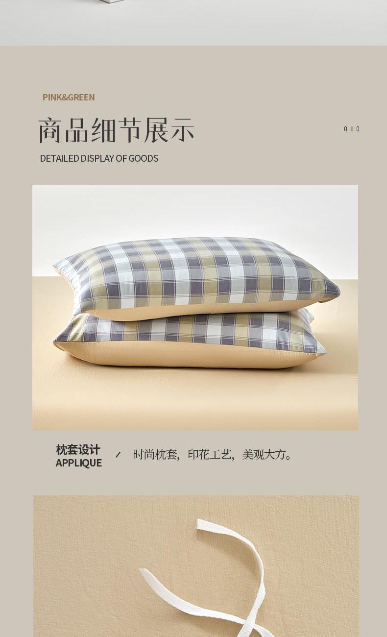 规 格:被套-200×230(±2)cm 床单-245×250(±2)cm 枕套-48×74(±1)cm×2 面 料:斜纹精梳棉 花 型:格子铺 斜纹精梳棉面料,环保、亲肤,让生活更舒适。 用心的品质把关,认真的细节处理,让使用得到大的尊重. 無印格子设计,经典与,让体验更舒适