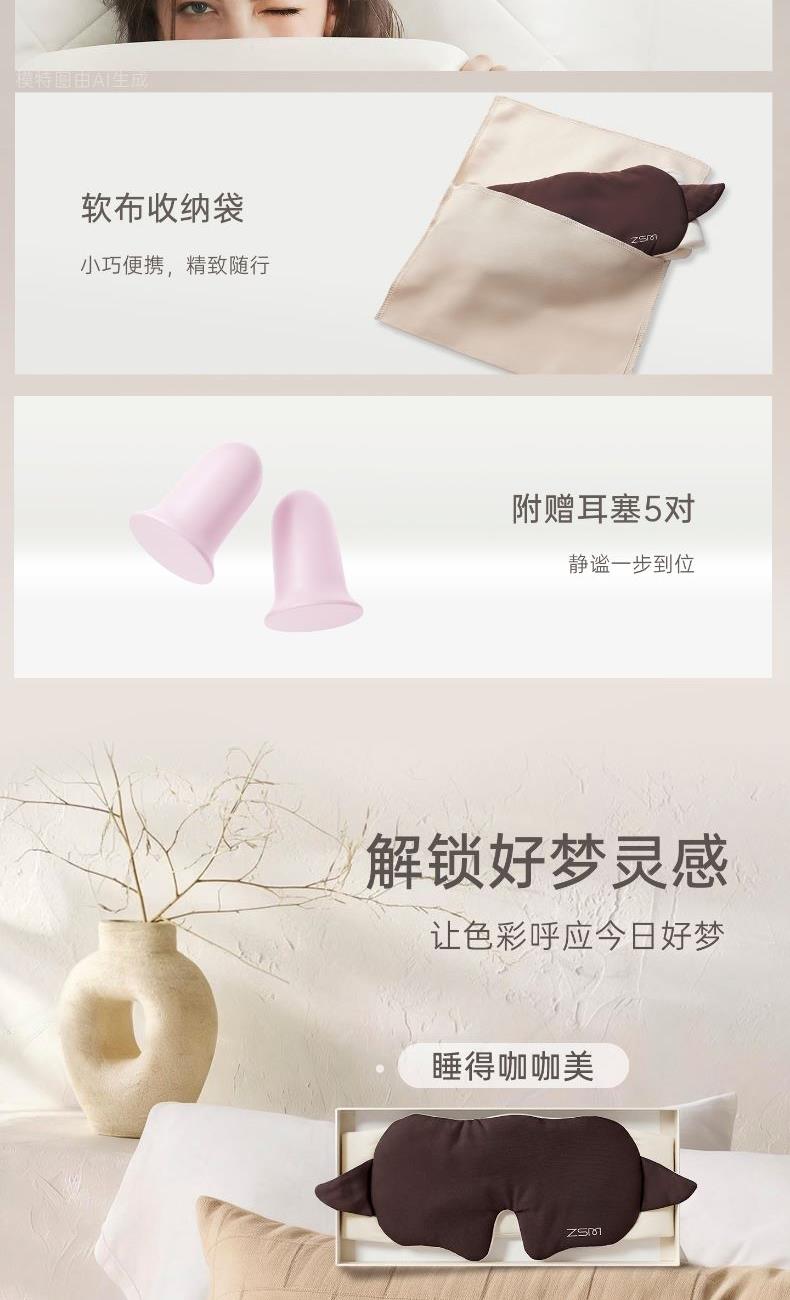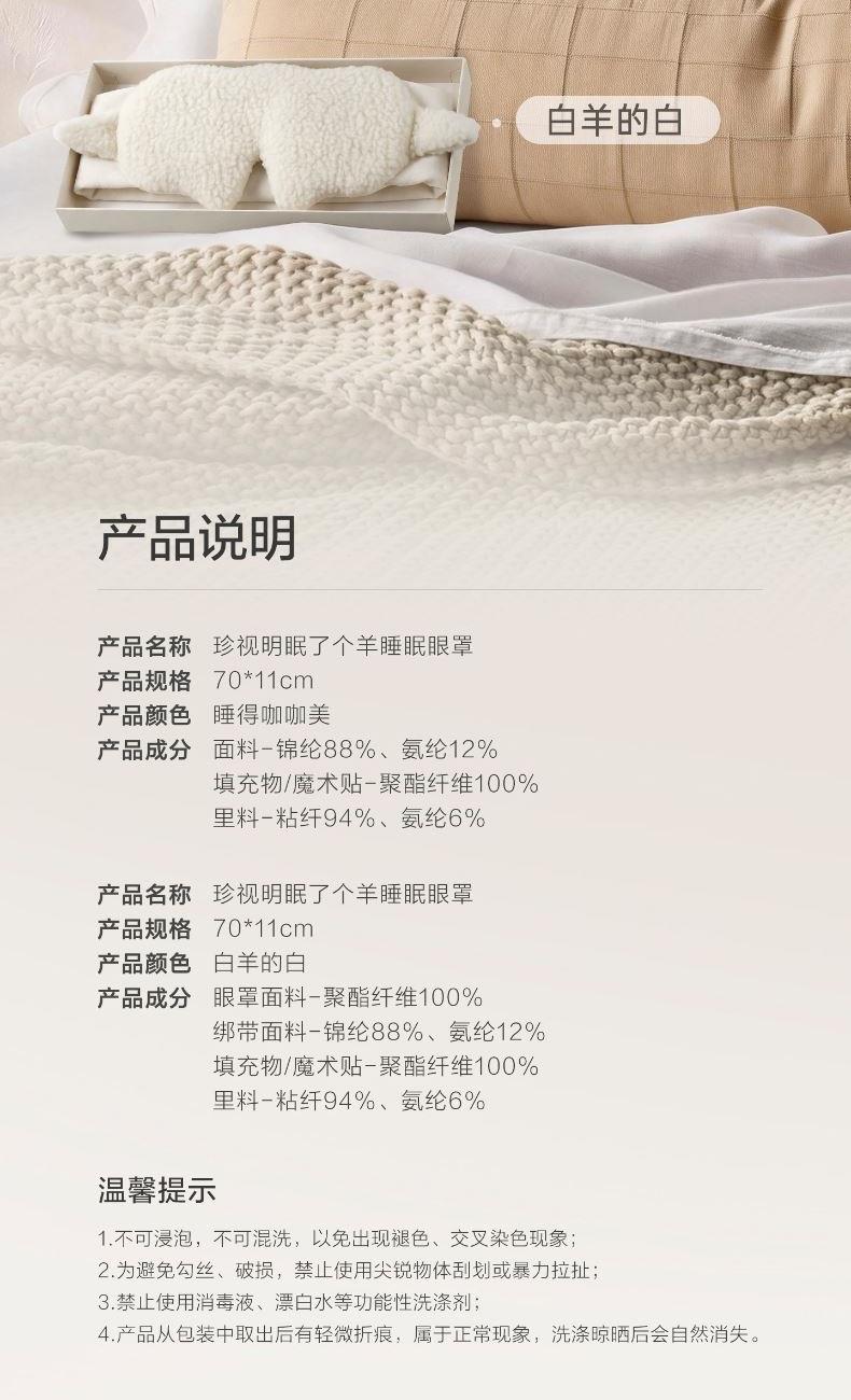 配置:眼罩1+睡眠耳塞*5对 收纳袋1+外包材1 规格:70*11cm 1套/盒 颜色:白羊的白/睡得咖咖美/梦里没蕉绿