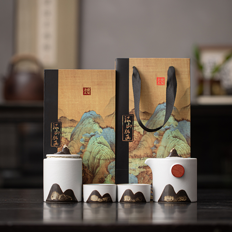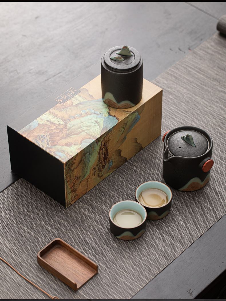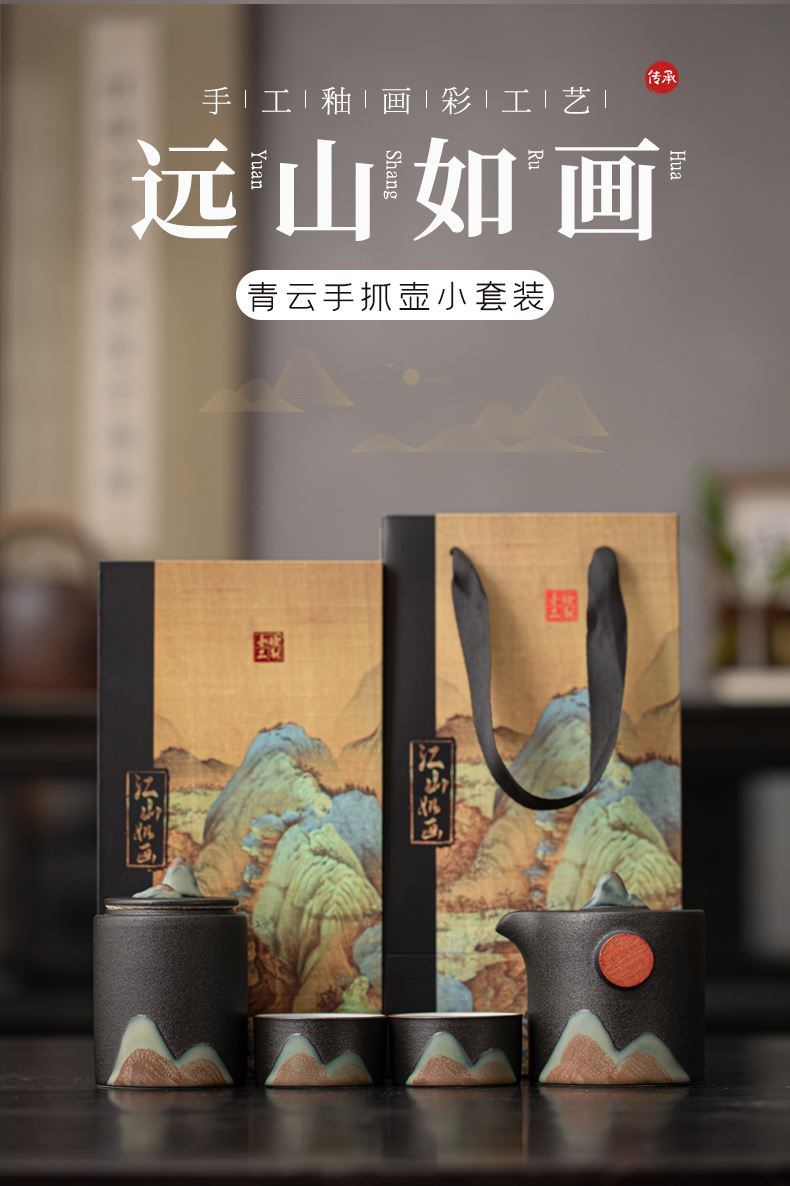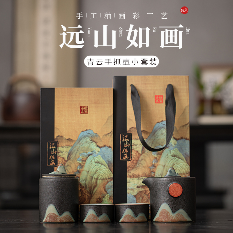 尾桥下窑远山云舒/青云手抓壶旅行套装商务促销会议节日伴手礼