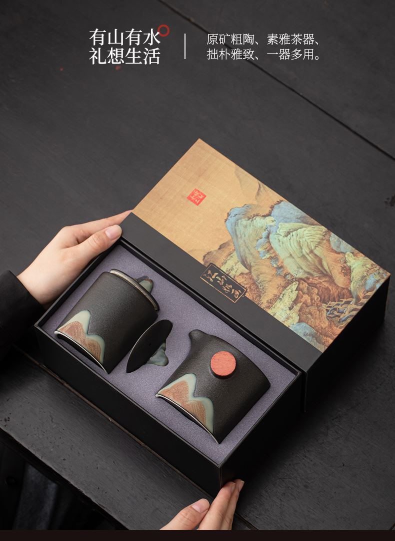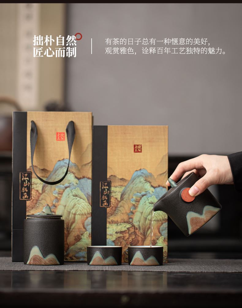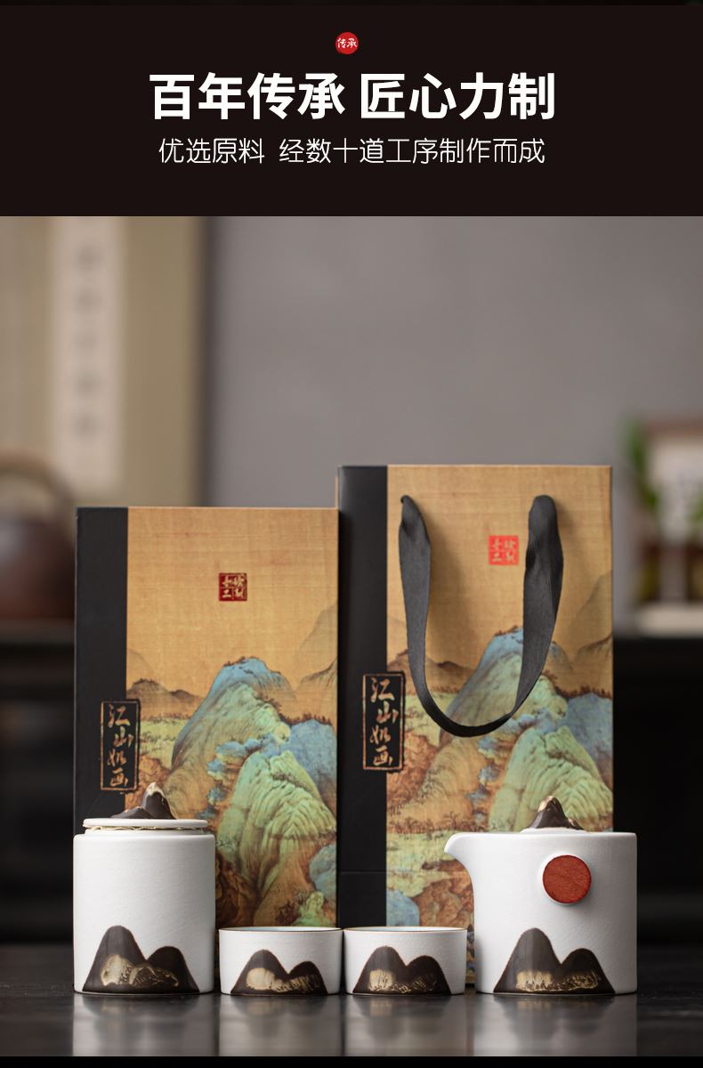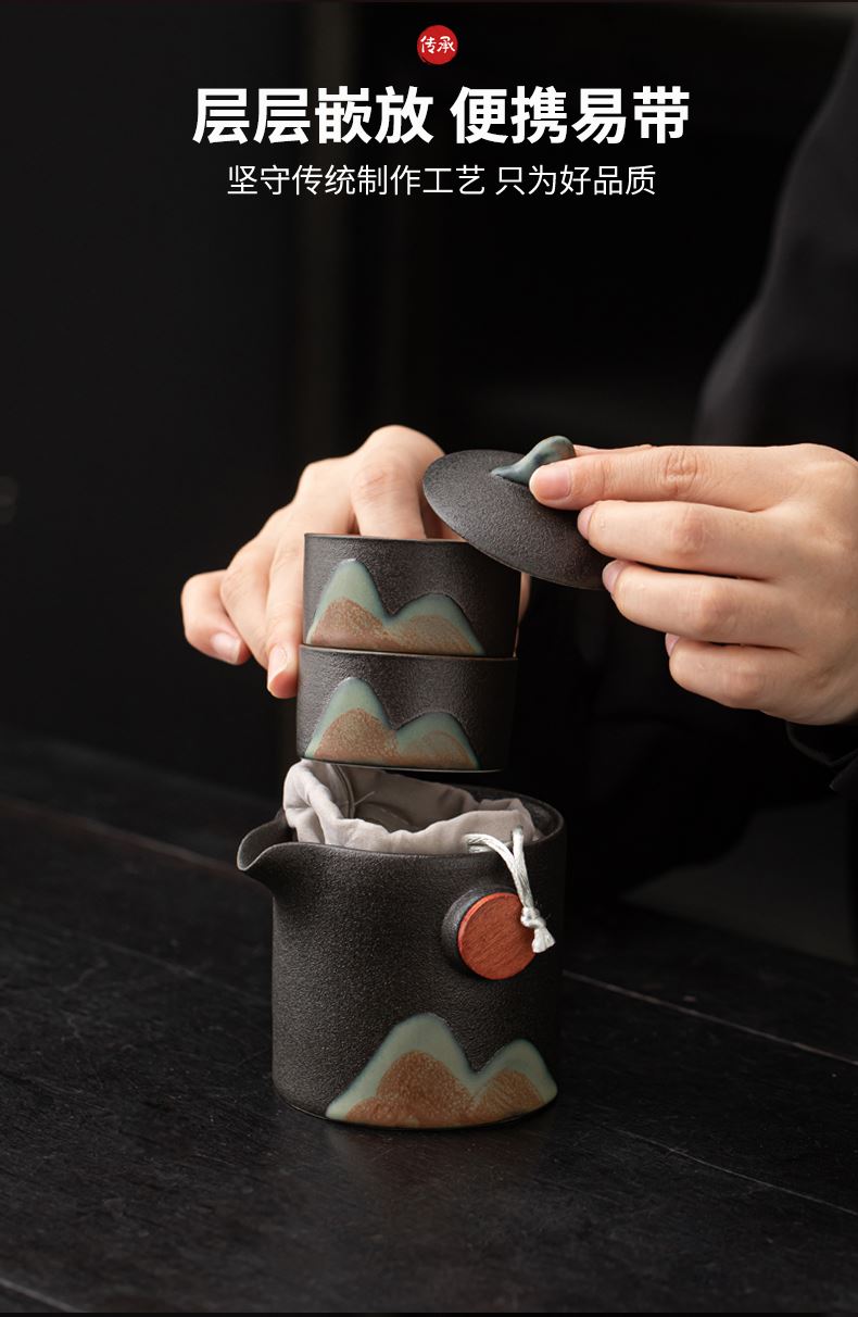 尾桥下窑远山云舒/青云手抓壶旅行套装商务促销会议节日伴手礼