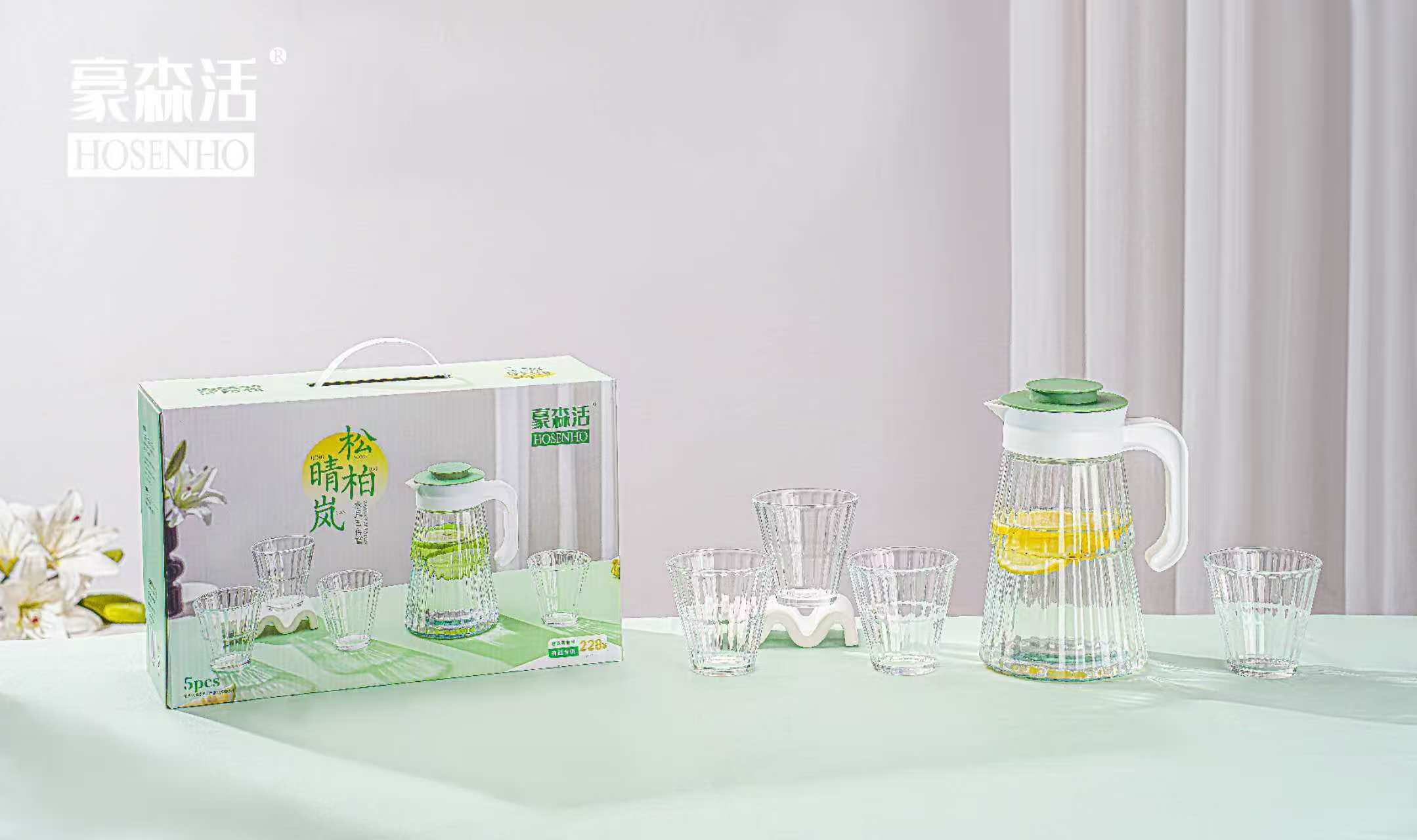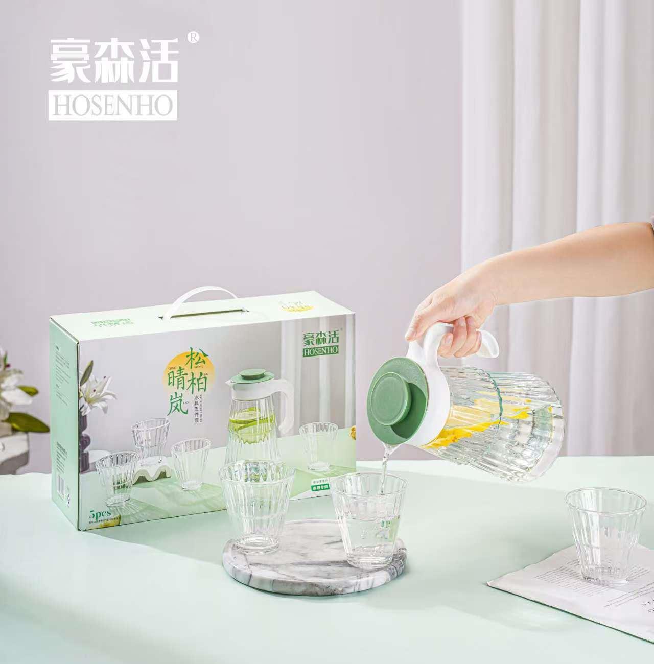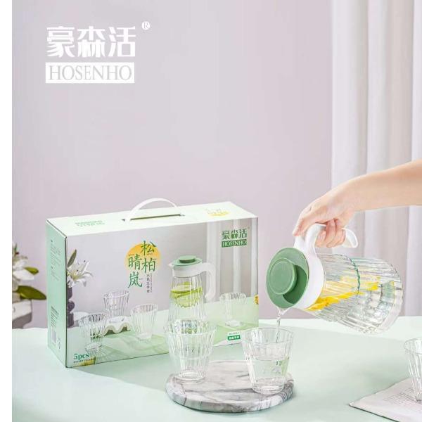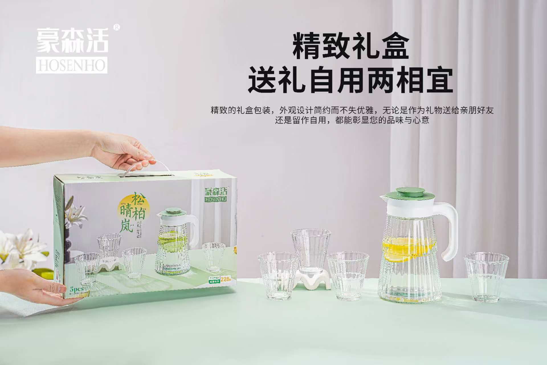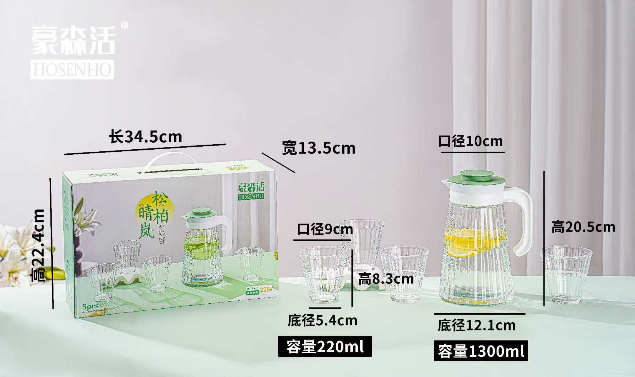 松柏晴岚水具五件套 规格:1*12套 货号:SBQL-L5 容量:壶体1300ml*1+杯子220ml*4 彩盒尺寸:34.2*13*22cm 外箱尺寸:69.8*40*50cm 条码:6976254570498