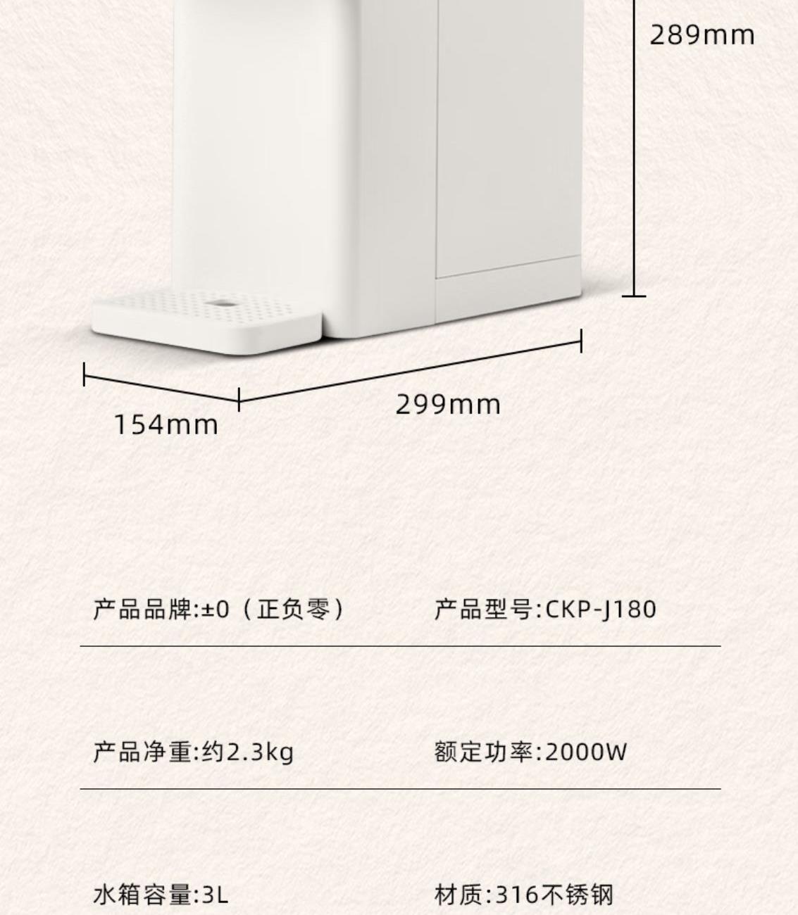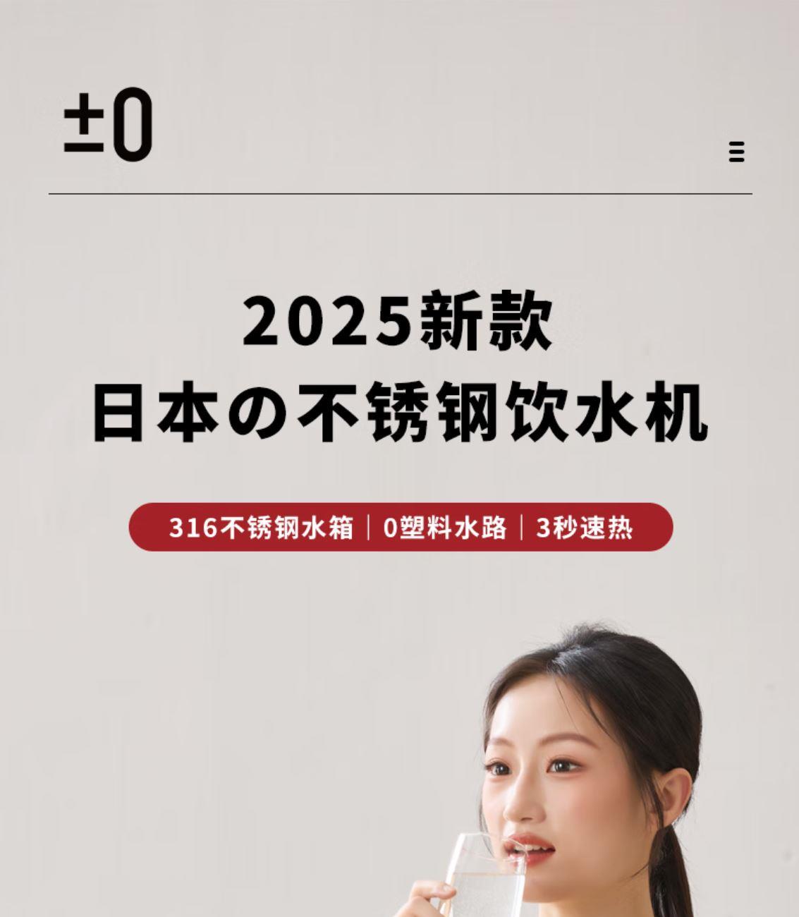 ±0日本正负零316L不锈钢水路即热式饮水机CKP-J180