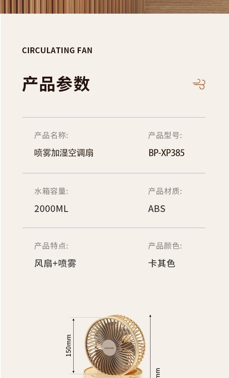 • 豹牌喷雾加湿空调扇BP-XP385(插电款)