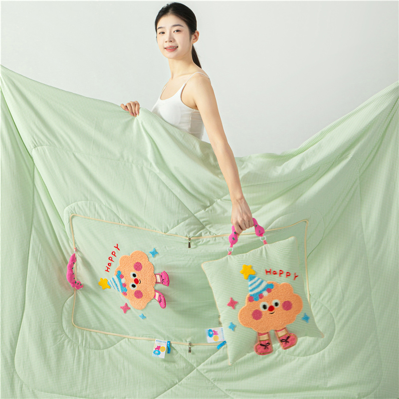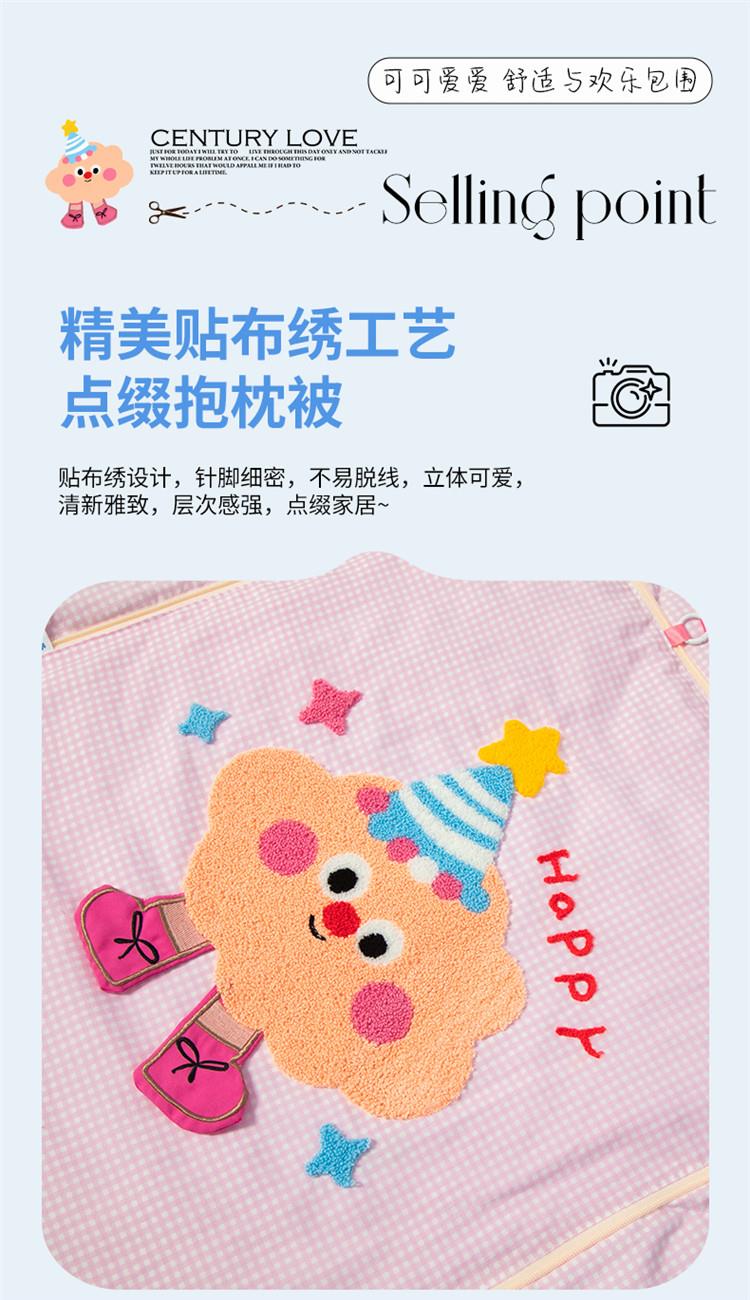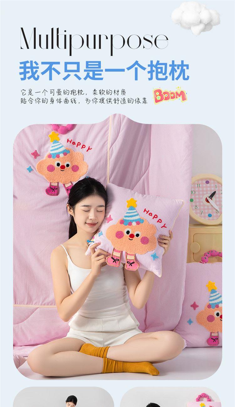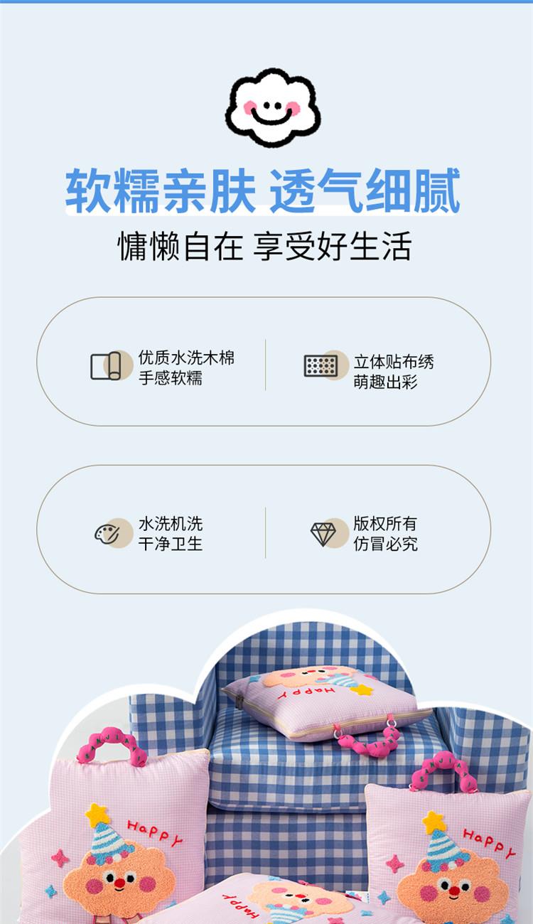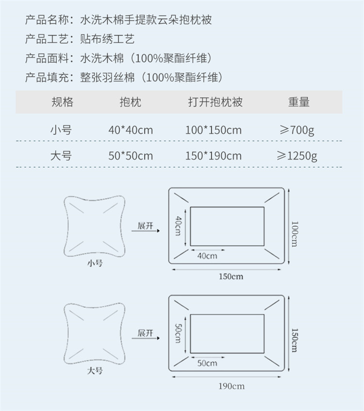 本品采用AB版面料均采用聚酯纤维制作的木棉水洗面料,A+B版不同色系给消费者带来不一样的感官体验,水洗棉面料具有保暖舒适、蓬松透气、吸湿排汗、亲肤柔软舒适不过敏等特点! 面料:水洗木棉 填充:整张羽丝棉 工艺:贴布绣 尺寸:40*40cm 打开100*150cm