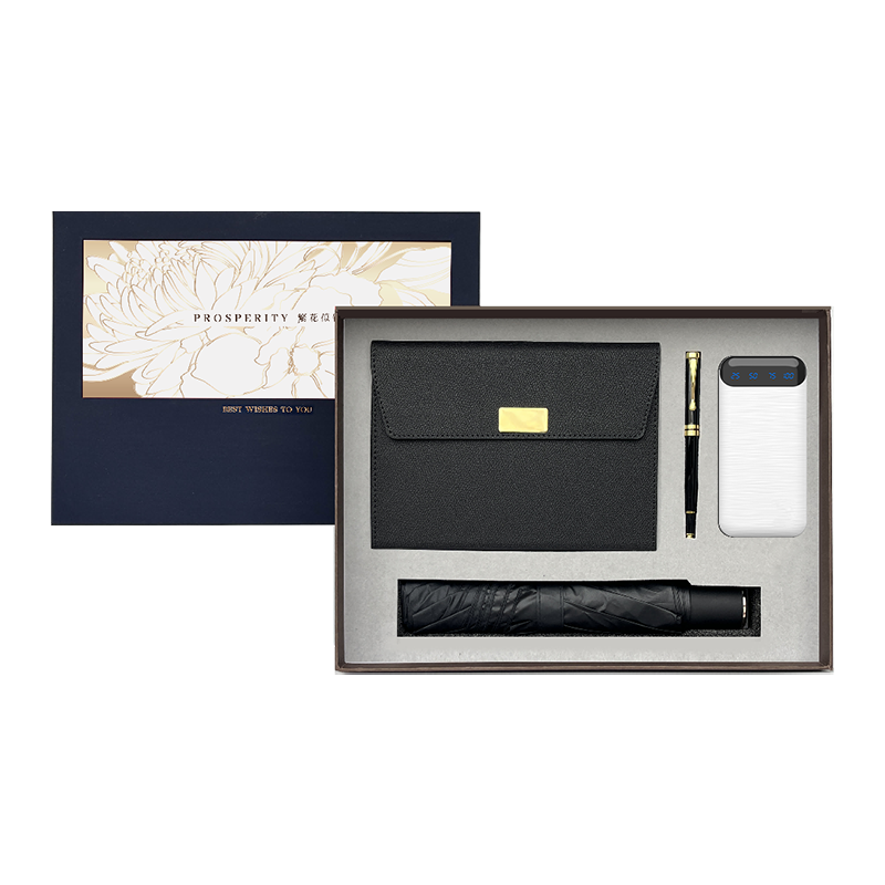 ❶ 笔记本 ❷ 签字笔尺寸:13.5*1cm ❸ 移动电源 10000毫安 ❹ 雨伞八骨黑胶伞 伞下直径98cm ❺ 手提袋 尺寸: 37*30*11cm