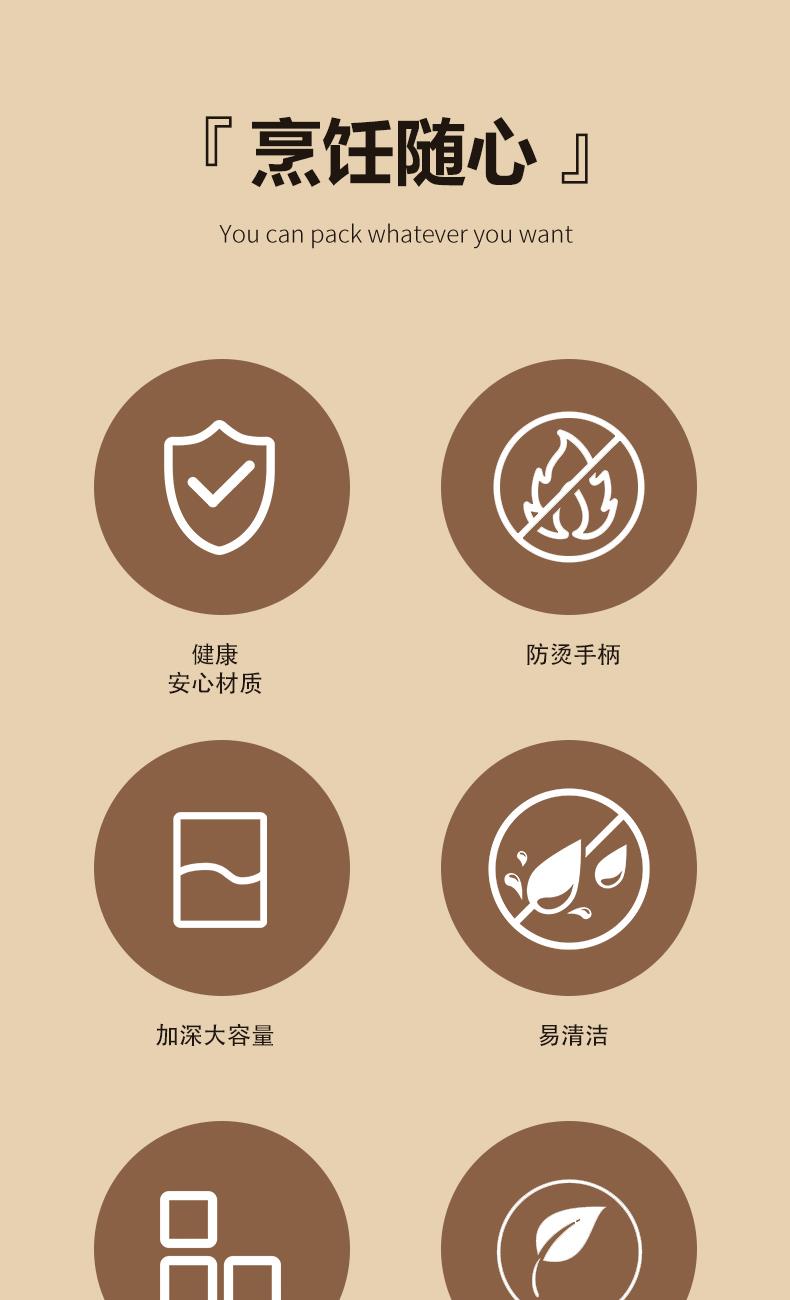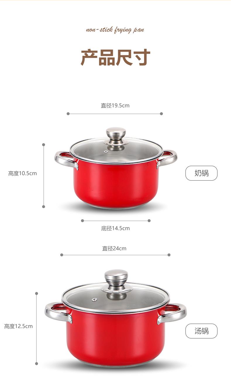 产品型号:SCG-A51888 产品规格:奶锅20CM/汤锅24CM/煎锅26CM 产品材质:铁素体不锈钢 彩盒规格:15*50*33CM 装 箱 数:12套/件 条 形 码:6975199950280 ﹉﹉﹉﹉﹉﹉﹉﹉﹉﹉﹉﹉﹉﹉﹉﹉﹉﹉﹉﹉﹉﹉ 实力“开门红”:内外兼修,烹饪无忧! 煎、炒、焖、炖、煮,样样精通!从新年大餐的硬菜,到日常的快手小炒,它都能轻松搞定,用这口“开门红”好锅,为家人烹制一顿团圆饭,寓意着新的一年: · 日子红红火火! · 事业鸿运当头! · 家庭幸福美满!