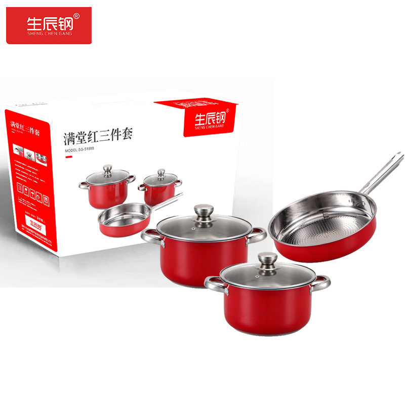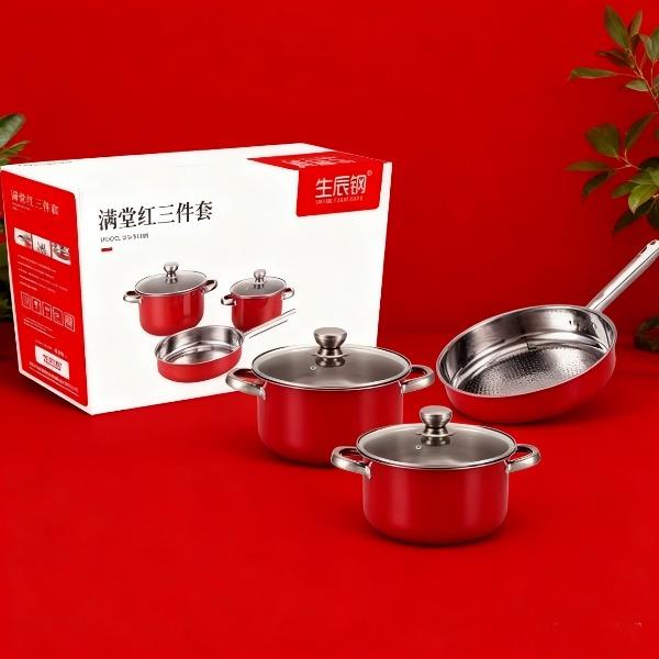 • 生辰钢满堂红三件套(开门红锅具)