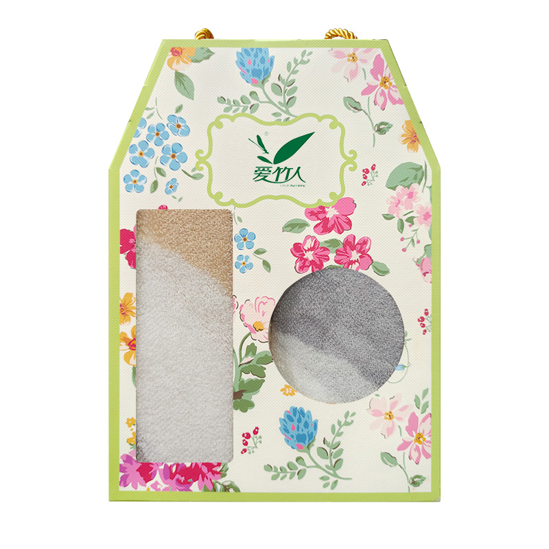 爱竹人竹纤维条纹挂钩毛巾2条盒装C02